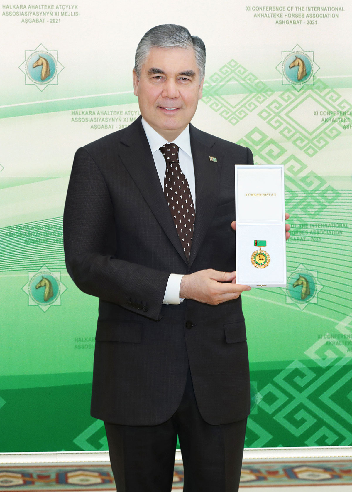 Further, the head of the state has signed the Orders on award of the most distinguished horse and dog breeders of the country with the state awards as well as on conferring honorary title «Türkmenistanyň at gazanan atşynasy» to active foreign members of International Ahalteke Equestrian Association on occasion of National Turkmen Horse Holiday and Turkmen Shepherd Dog Celebration.