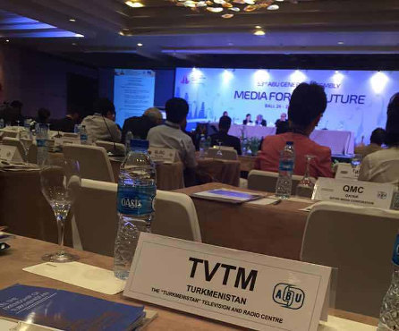The Turkmen delegation consisting of representatives of the Executive Committee on Preparation for the Asian Games-2017 and the State Committee on Television, Radio Broadcasting and Cinematography took part in the 53rd General Assembly of the Asia-Pacific Broadcasting Union (ABU) on the Island of Bali, Indonesia. The working trip was undertaken in order to achieve the goals set by President Gurbanguly Berdymuhamedov for the study of international experience in the media sector, as well as in the field of sports journalism, expanding the scope of advertising and information campaign to promote the Asian Games-2017, and for the establishment of close partnership in this area. The forum that had gathered delegations of more than 200 broadcasting ABU member companies and other media agencies was held under the motto “Media for the Future”, and one of its topics was the V Asian Indoor and Martial Arts Games to take place in Ashgabat next year. The great interest of session attendees was aroused by statements of Turkmenistan representatives, who told about the key implementation areas of the large-scale project “Asian Games-2017”, including the organization of the Games’ media support. Conferences, seminars and joint meetings of ABU groups on the issues of software sharing, the use of modern equipment and advanced technologies in TV and radio broadcasting were held as part of the General Assembly of the Asia-Pacific Broadcasting Union. During the sports group’s meetings, exchange of views and introduction to new trends in the coverage of major events took place. The Turkmen delegation held a presentation of the Asian Games-2017 with demonstration of video and informative reports. In particular, the presentations touched on such topics as equipment of the Olympic venues, volunteers training, as well as the preparation of bilingual dictionaries and thematic phrase books. Members of the Turkmen delegation met with Secretary General of the Asia-Pacific Broadcasting Union Javad Mottaghi, and attended other events, organized as part of the Forum. In addition, the Asian Games-2017 was covered on the pages of the printed Bulletin of the 53rd ABU General Assembly. The article about the upcoming Games in the Turkmen capital points out that it is expected this large-scale sporting event will gather the record number of participants. More than 5000 athletes from 62 countries will compete for medals where the strongest of them will be identified in 21 sports. The athletes will be accompanied by about 2 thousand 500 coaches and more than 10 thousand foreign specialists. The Asian Games will be served by 10 thousand volunteers. It is supposed that the Games will collect up to 200 thousand fans from different countries. Special emphasis in the article is placed on the Olympic Village with more than 30 facilities, and the central 45 thousand-seat stadium which is to host the opening and closing ceremonies of the Asian Games-2017 held under the motto “Health. Enthusiasm. Friendship”.