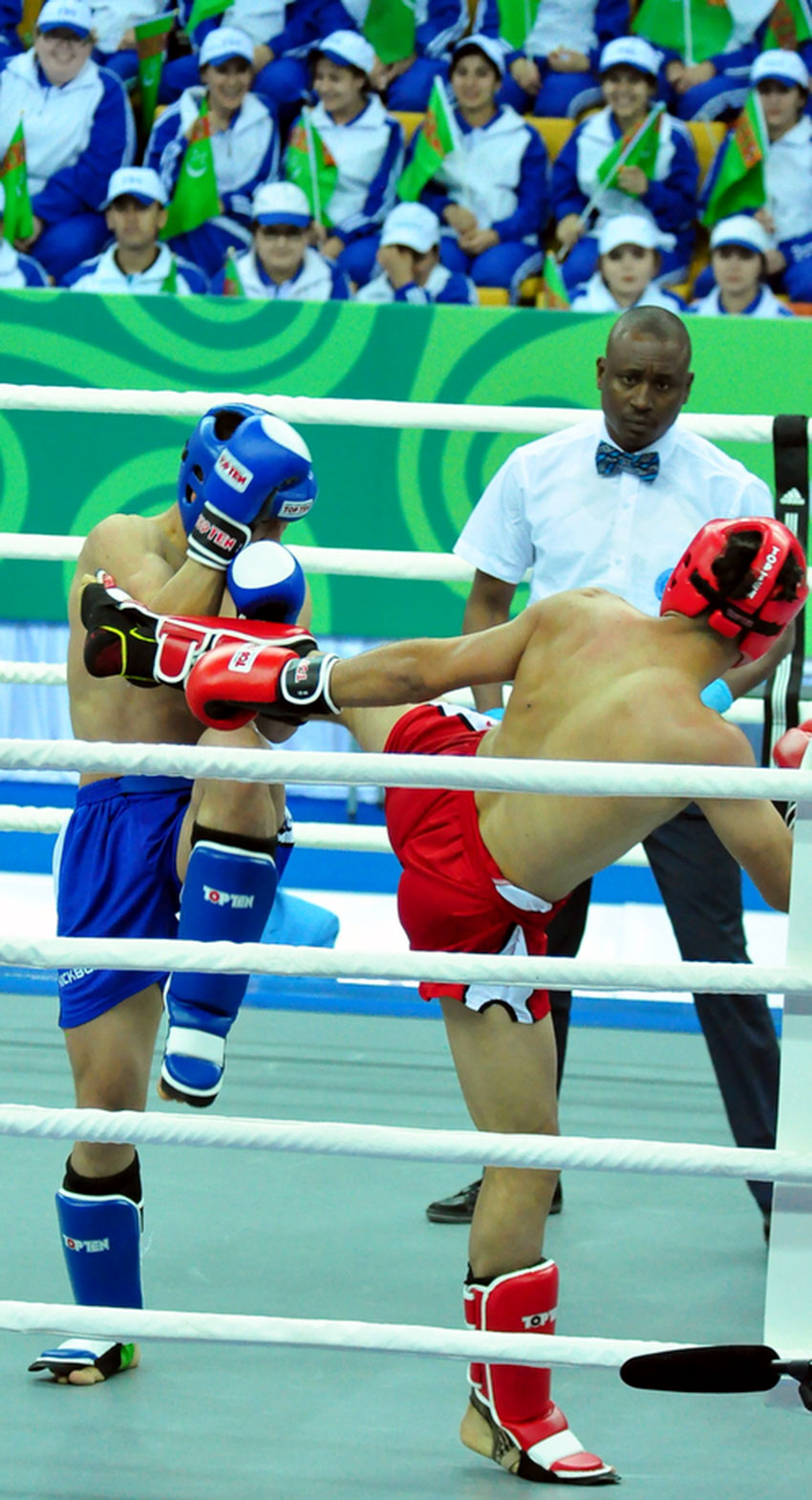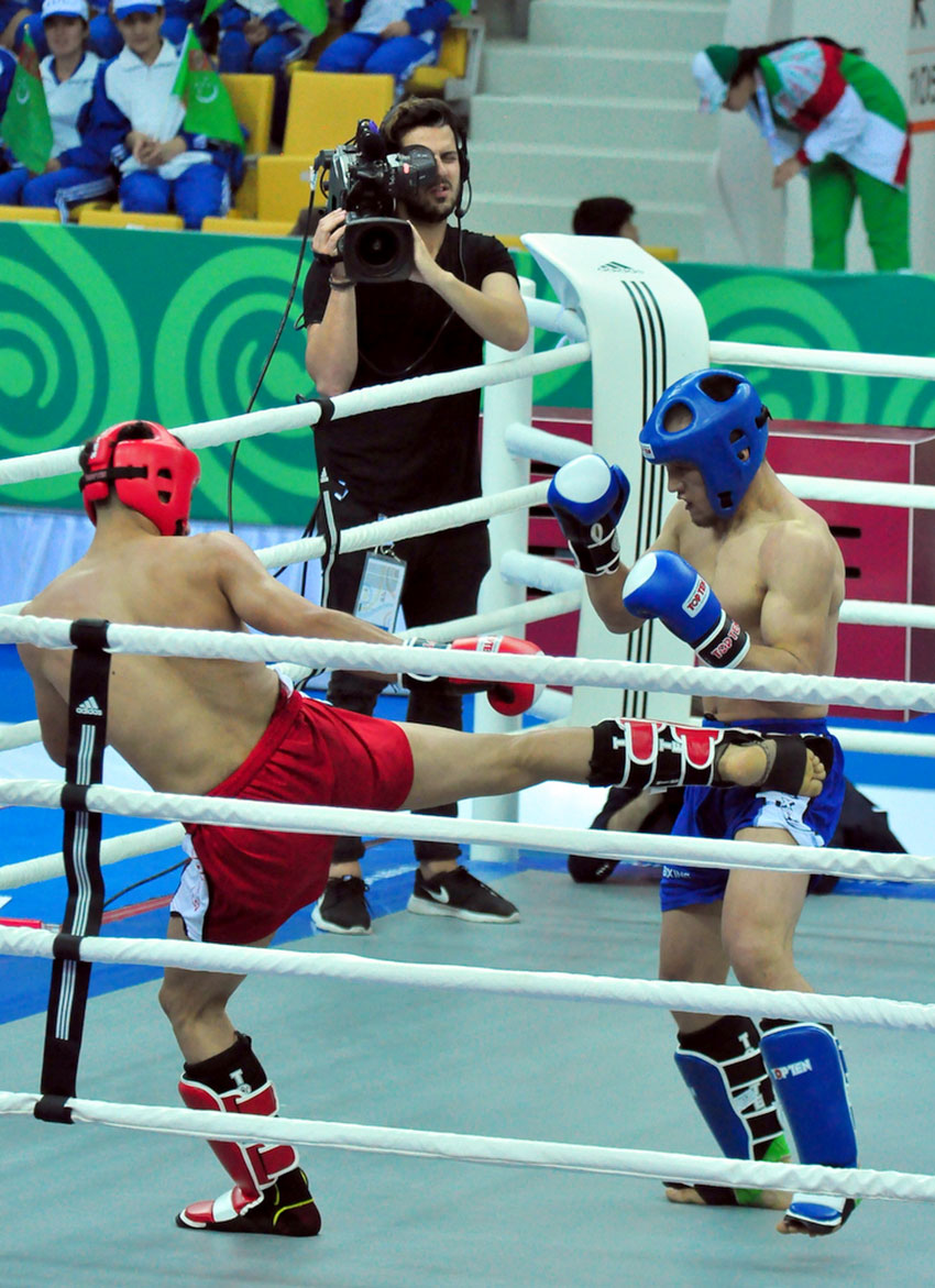 In the capital’s Olympic village, it was started the Asian Kickboxing Championship, attended by nearly 300 sportsmen from 17 countries – the Republic of Korea, India, Malaysia, Jordan, Syria, Nepal, Iraq etc. Program includes six medal events – point-fighting, semi-contact, kick-light, low-kick, full-contact and solo exercises. Today, there were held the quarterfinal bouts, which the Turkmen sportsmen completed without defeats. The audience especially remembered the fight in the weight category under 81 kg, where our compatriot Azamat Jumakuliev knocked out the Kyrgyz athlete on the 20th second of the first round. Kickboxing is one of the youngest events, originated in the 60s of the last century in the United States. Originally, it was “full-contact karate”, but due to the protests of the leaders of the International Traditional Karate Federation, new martial arts was renamed into kickboxing. “Full-contact” today is one of disciplines in the competition, where only body can be stricken. High stable results of Turkmen athletes in the international field are evidenced by hundreds of medals, filling our country’s sporting achievement treasury. For example, this year, at major international tournaments in Helsinki (Finland) and Riga (Latvia), our athletes won 39 medals – 22 gold, nine silver and eight bronze. In the present Asian Championship, we expect the Turkmen kickboxers to demonstrate their best skills.