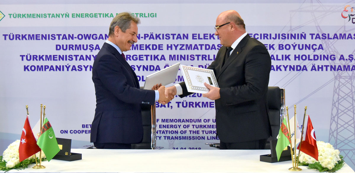 В Ашхабаде состоялось подписание Меморандума о взаимопонимании между Министерством энергетики Туркменистана и компанией «Çalyk Holding A.Ş» по сотрудничеству в реализации проекта строительства линии электропередачи Туркменистан-Афганистан-Пакистан. Как было подчёркнуто, нынешняя встреча проводится Министерством энергетики по поручению Президента Гурбангулы Бердымухамедова в целях разработки правовой базы взаимного сотрудничества по строительству линии электропередачи напряжением 500 киловольт вдоль трассы транснационального газопровода Туркменистан-Афганистан-Пакистан-Индия. Отмечалось, что надёжной основой плодотворного диалога призвана послужить совместно разработанная программа, включающая в себя конкретные предложения по активизации продуктивного взаимодействия в энергетическом секторе с турецкой компанией «Çalyk Holding A.Ş». Туркменистан вызывает во всём мире искренний интерес и признание впечатляющими достижениями в социально-экономическом развитии государства, подчеркнули турецкие бизнесмены. Благодаря успешно проводимой туркменским лидером политики широкого международного сотрудничества, как со странами-соседями, так и всеми государствами планеты, укрепляются тесные деловые контакты с представителями бизнес-кругов, которые стремятся внести свой весомый вклад в реализацию преобразовательных программ и проектов, нацеленных на формирование мощной промышленной инфраструктуры. Строительство ТАПИ, по которому будут осуществляться долгосрочные поставки туркменского газа в страны Юго-Восточной Азии, придаст мощный импульс экономическому развитию региона, будет содействовать решению вопросов социального и гуманитарного характера, укреплению мира и стабильности. В частности, появится возможность создать тысячи новых рабочих мест, соответствующую электроэнергетическую, транспортно-коммуникационную и социальную инфраструктуру. Помимо обеспечения электроэнергией всех инфраструктурных объектов данной магистрали, это даст возможность её экспорта транзитом через Афганистан в Пакистан и другие страны Юго-Восточной Азии, правительства которых неоднократно заявляли о высокой заинтересованности в скорейшей реализации данного проекта, инициированного туркменским лидером. В числе приоритетных направлений развития энергетической политики Туркменистана были названы наращивание производства электроэнергии и её экспорт, повышение качества энергоснабжения, строительство энергоёмких промышленных производств в целях улучшения экономических, социально-бытовых условий жизни населения. Так, в настоящее время в рамках реализации Концепции развития электроэнергетической отрасли на 2013-2020 годы уже построено несколько газотурбинных электростанций. Отмечалось, что проводимые масштабные работы в данной области позволяют нашей стране полностью обеспечить себя электроэнергией и экспортировать её в соседние государства – Исламскую Республику Афганистан и Исламскую Республику Иран. Как известно, для увеличения объёмов экспортируемой электроэнергии в Афганистан, были построены воздушная линия электропередачи и подстанция напряжением 500 киловольт. Эффективному решению задач, поставленных главой государства Гурбангулы Бердымухамедовым перед стратегическим сектором национальной экономики, сп