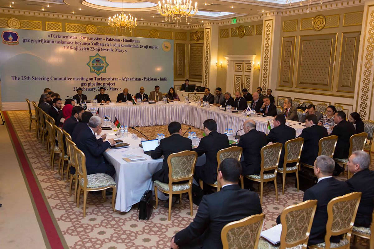 В административном центре Марыйского велаята состоялось очередное, 25-е заседание Руководящего комитета по проекту магистрального газопровода Туркменистан-Афганистан-Пакистан-Индия с участием высокопоставленных руководителей и представителей отраслевых министерств и ведомств стран-участниц проекта, а также Азиатского банка развития. Повестка дня включала ключевые вопросы дальнейшей практической реализации этого грандиозного проекта. В частности, было принято решение о разделении строительства проекта на этапы и утверждён график их осуществления. Помимо этого, особое внимание участники заседания уделили выборам финансового советника, возможностям привлечения внешних инвестиций, а также обсудили правовой статус запланированных к подписанию соглашений с правительствами принимающих стран (Афганистан и Пакистан). В ходе встречи был заслушан отчёт о работе, проделанной «TAPI Pipeline Company Limited», которую возглавляет Государственный концерн «Туркменгаз». Собравшиеся также согласовали и приняли решения по важным вопросам, связанным с юридическими и техническими аспектами. Как известно, старт строительству газопровода был дан в декабре 2015 года в Марыйском велаяте. Значимость данного события подчеркнуло то, что в торжественной церемонии по этому поводу приняли участие Президент Туркменистана, Президент Исламской Республики Афганистан, Премьер-министр Исламской Республики Пакистан и Вице-президент Республики Индия. Экономическую обоснованность данного проекта подтверждает общепризнанный, в том числе авторитетными международными экспертами, факт наличия в недрах Туркменистана грандиозных запасов природного газа. И это позволяет нашему государству гарантированно обеспечить долгосрочные поставки «голубого топлива» по любому направлению, включая маршрут ТАПИ. Собравшиеся, подтвердив высокую заинтересованность своих стран в скорейшей реализации строительства данного газопровода и поставках туркменского природного газа, обсудили ряд других вопросов по ранее достигнутым договорённостям, нацеленным на активизацию совместной работы. Участники заседания Руководящего комитета отметили важность прогресса, достигнутого в продвижении проекта ТАПИ, подчеркнув в данной связи конструктивные усилия Президента Туркменистана Гурбангулы Бердымухамедова, направленные на ускорение реализации этого грандиозного замысла, и выразили поддержку международных инициатив туркменского лидера по формированию под эгидой ООН действенного механизма, способного обеспечить безопасность транзита энергоресурсов.