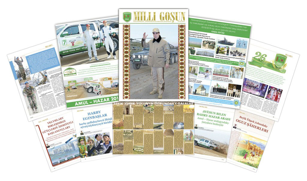 Вышел в свет очередной номер журнала «Milli Goşun» («Национальная Армия»), издаваемого Министерством обороны в целях патриотического воспитания молодёжи. На ярко иллюстрированных страницах издания находят отражение успехи и достижения Вооруженных Сил Туркменистана. Отличительная черта издания – высококачественные фотографии и инфографика, которые органично сопровождают содержательные, написанные выразительным языком материалы, повествующие о поступательном развитии туркменской армии. Лейтмотивом первого номера в 2018 году стал его девиз – «Туркменистан – сердце Великого Шёлкового пути». Концептуально статьи журнала объединяет схема повествования «из прошлого в будущее», позволяющая осмыслить сегодняшние успехи нашего государства через призму богатой истории туркменского народа, благодаря чему прослеживается его уникальный исторический путь. На первой странице с помощью красочных иллюстраций в подробностях изображен маршрут авторалли Амуль-Хазар 2018, который стартует 9 сентября в городе Туркменабат и через пять дней финиширует в Национальной туристической зоне «Аваза». В аннотации к журналу подчеркивается, что первая глава книги Президента Гурбангулы Бердымухамедова «Туркменистан – сердце Великого Шёлкового пути» посвящена роли защитников Отечества и их большому вкладу в сохранение безопасности на территории нашего государства. Как подчёркивает глава государства, преданная служба туркменских воинов обеспечивала полную защищенность путешественников и торговцев, которые следовали по данному историческому маршруту, и во многом именно благодаря им он проходил через Туркменистан, всегда являвшийся оплотом стабильности и процветания в регионе. В первой статье номера отражены конкретные шаги, предпринятые Верховным Главнокомандующим Вооружёнными Силами страны генералом армии Гурбангулы Бердымухамедовым для обеспечения поступательного развития и модернизации ВС Туркменистана, снабжения национальной армии передовым вооружением и военной техникой, соответствующей мировым стандартам. Одно из наиболее важных событий февраля этого года – закладка афганского участка газопровода Туркменистан-Афганистан-Пакистан-Индия, также нашло отражение в номере, в публикации которого подробно рассказывается об огромной социальной и экономической значимости данного проекта для устойчивого развития и стабильности Азиатской части континента, что напрямую связано с безопасностью стран обширного региона. Вдохновляющее и актуальное интервью первой девушки-десантницы в рядах Вооруженных Сил Туркменистана, опубликованное на страницах журнала, рассказывает читателям об истории жизни молодой девушки, выбравшей свой путь исходя из патриотического воспитания и огромной любви к Отечеству. На страницах издания также опубликована научная статья, посвященная процессам модернизации правовой базы прокуратуры Туркменистана. Автор прослеживает тенденции совершенствования юридических основ деятельности этой системы органов высшего надзора, а также раскрывает роль профессии прокурора, стоящего на страже законности, в успешной реализации Государственных программ, направленных на развитие нашей страны во всех отраслях национальной экономики. Отдельный материал в номере посвящён смысловому содержанию девиза 2018 г