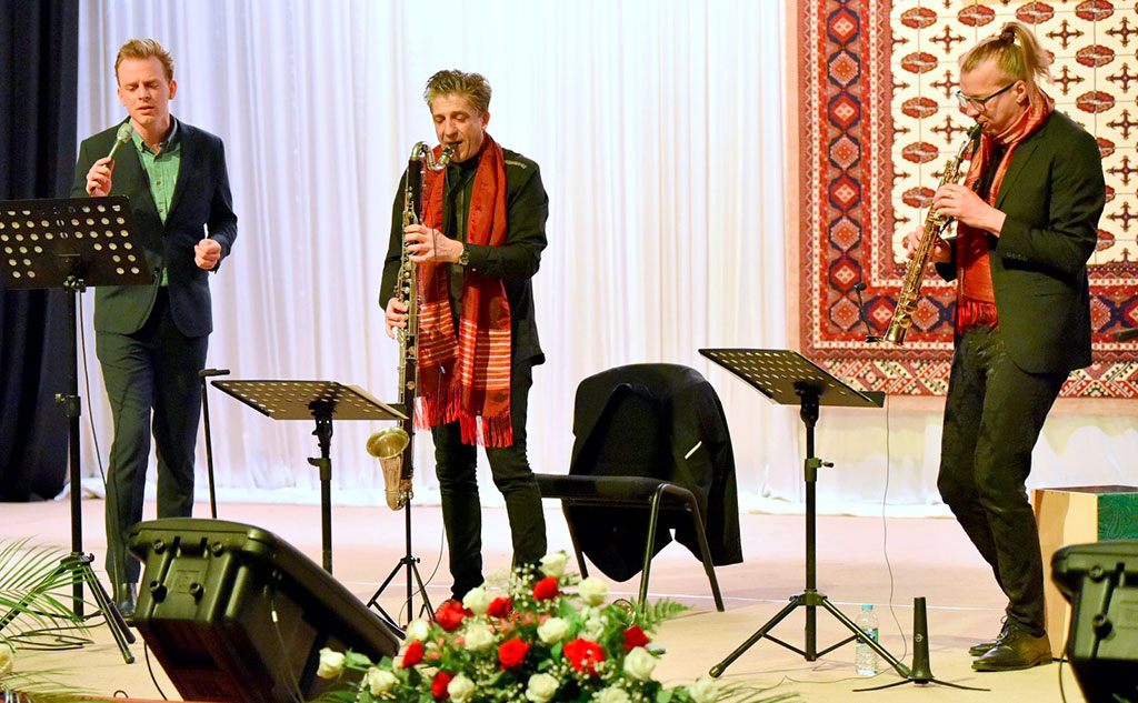 Известные немецкие музыканты из группы «FAVO» Фальк Брайткройц и Фолькер Шлотт и популярный вокалист из Бельгии Сандер де Винне порадовали жителей столицы весенним джазовым настроением. Концерт, организованный Министерством культуры Туркменистана совместно с Посольством Федеративной Республики Германия в нашей стране и Институтом Гёте (Алматы), стал подарком не только для восторженных слушателей и любителей джаз-музыки, но и для самих исполнителей, внесших свой в клад в развитие творческого диалога между странами. На сцене киноконцертного зала «Ватан» зарубежные музыканты наряду с собственными композициями представили публике кавер-версии произведений Бобби Макферрина, Ариэля Рамиреса, Чика Кориа. В концертной программе приняли участие джазовая певица Майса Ниязова и перкуссионист Довлет Иванов. Совместно с немецкими коллегами они исполнили классическую песню-балладу «Где-то над радугой» и произведение «Этот Маскарад». При поддержке зала «FAVO» исполнила известную композицию «Лунный вечер», очень популярную в нашей стране. Финал композиции потонул в аплодисментах.