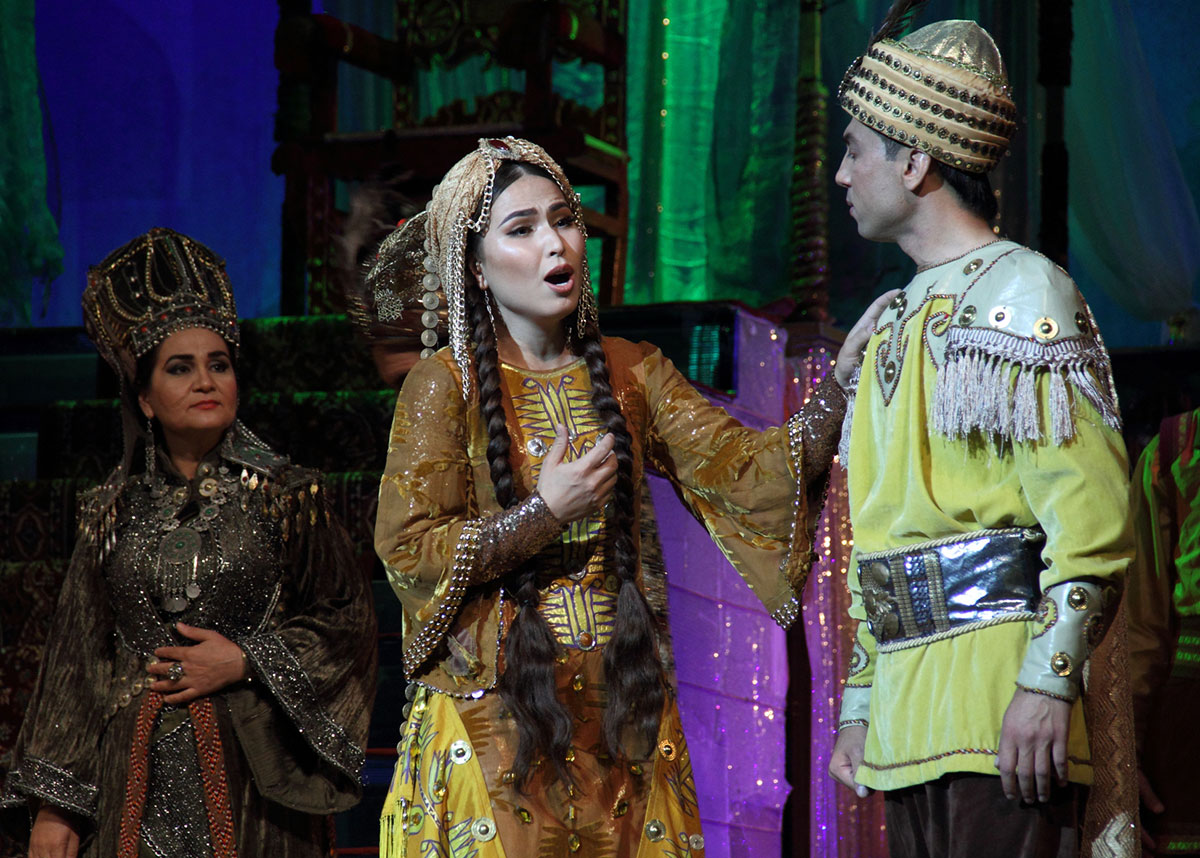В рамках пятого дня Недели культуры в Доме культуры города Анау Ахалского велаята состоялся концерт «Küşt depip, gazal aýdyp... », на котором выступили фольклорно-танцевальные коллективы страны. Целью мероприятия стала популяризация традиции пения и танца куштдепди, включённого в Репрезентативный список нематериального культурного наследия человечества ЮНЕСКО. В Государственной академии художеств Туркменистана были организованы научная конференция и выставка произведений изобразительного искусства. А в Доме культуры села Гями этрапа Ак бугдай Ахалского велаята прошло театрализованное выступление народного театра Каахкинского этрапа. Нынешняя Неделя культуры ознаменована своеобразным юбилеем – 10 лет назад – 27 июня 2008 года туркменское оперное искусство пережило своё второе рождение. Первой в репертуар театров вернулась опера «Şasenem we Garyp», за которой последовали «Leýli we Mejnun», «Zöhre we Tahyr», «Görogly», «Magtymguly», «Ýusup-Züleýha», «Aýna», «Saýatly Hemra», «Ruhubelentler». Сегодня в честь отмечаемого в Туркменистане Дня работников культуры и искусства, а также поэзии Махтумкули Фраги состоялась премьера оперы «Hüýrlukga-Hemra». В основе постановки, представленной Национальным музыкально-драматическим театром имени Махтумкули, – сюжет одноимённого лирического дестана «Hüýrlukga-Hemra». В спектакле упор сделан не на академичность, а именно на народную манеру исполнения партий. Опера отличается изяществом и выразительностью музыкального языка, его богатством, национальным колоритом, искренностью чувств. Она оказалась близкой и понятной как искушённому, так и неподготовленному слушателю. Доброй традицией стало привлечение к участию в столь масштабном культурном мероприятии не только профессиональных артистов, но и учащихся творческих учебных заведений страны. Молодые солисты прекрасно справились с ролями главных героев, а мэтры сцены органично дополнили историю любви двух юных сердец, проявив все грани своего мастерства. В драматургии новой постановки широко использованы возможности больших сцен. Опера изобилует развёрнутыми хоровыми и хореографическими эпизодами, многофункциональные подвижные декорации также подчеркивают динамику происходящего на сцене действия. Музыка в исполнении Государственного симфонического оркестра с первых нот захватывает внимание слушателей, погружая их в изумительную атмосферу сказки. Спектакль начинается сценой во дворце падишаха Хысрова, пожелавшего владеть прекрасным соловьём из волшебного Эдемского сада. Глубокие голоса артистов завораживают, барабаны отстукивают ритм в унисон бьющихся сердец, а скрипки играют на потаённых струнах души. Народные мелодии и ритмы бьют ключом, концентрируя все внимание слушателей на повествовании. Артисты творческого коллектива сумели передать присущие туркменскому народу мироощущение, верность слову и искренность в поступках. Удачно сделаны акценты и на преемственности традиций, мировоззрения и восприятия общечеловеческих ценностей – любви, верности, чести, что делает оперу «Hüýrlukga-Hemra» исключительной не только с точки зрения культуры, но и с позиции воспитания молодого поколения.