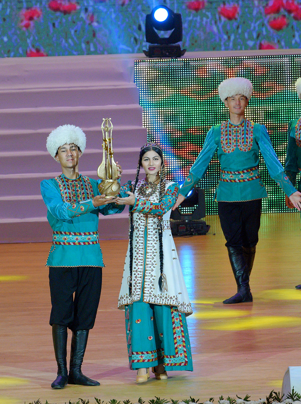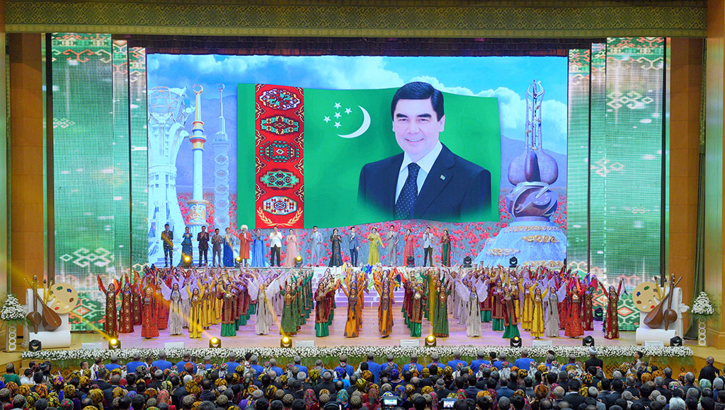 Туркменистан отмечает День работников культуры и искусства, а также поэзии Махтумкули Фраги. К празднику была приурочена Неделя культуры-2018, которая завершилась гала-концертом мастеров искусств в долине Ахала, под сводами «Nowruz ýaýlasynyň ak öýi». Торжества праздничного дня начались в сквере у памятника Махтумкули Фраги, расположенном в историческом центре Ашхабада, на одной из главных магистралей города – проспекте, носящем имя великого классика. Здесь состоялась церемония возложения цветов к монументу выдающегося туркменского поэта-мыслителя. Первой у подножия памятника устанавливается корзина с великолепными цветами от Президента Туркменистана Гурбангулы Бердымухамедова – в знак признания и преклонения перед поэтическим и провидческим гением Махтумкули Фраги, его гражданским мужеством и любовью к Отчизне, воспетой и прославленной. Затем букеты цветов возложили члены правительства, представители Меджлиса, военных и правоохранительных органов, администрации столицы, общественных организаций, аккредитованных в Ашхабаде дипмиссий, духовенства, почётные старейшины, деятели науки и культуры, а также руководители различных министерств и ведомств, средств массовой информации, работающих в Туркменистане иностранных компаний, студенческая молодёжь и гости нашей страны. Яркий цветочный ковёр у подножия памятника Махтумкули – выражение народной любви и безмерного почитания великого сына нации. Акция возложения цветов прошла также в столичном парке «Ылхам» - историко-художественном музее под открытым небом, олицетворяющем связь поколений и эпох, преемственность высокой духовной культуры, пронесённой сквозь тысячелетия. Затем торжества переместились в Ахалский велаят, где состоялась церемония закрытия Недели культуры-2018 и большой праздничный концерт. Неделя культуры-2018, проходившая под девизом нынешнего года «Туркменистан-сердце Великого Шёлкового пути», привлекла особое внимание к теме сохранения традиций, их трансформации в современности, помогла обозначить актуальные направления дальнейших действий по совершенствованию сферы культуры, а также профессионального роста её представителей. На несколько дней Ахалский велаят объединил лучшие творческие силы страны, в ходе многочисленных мероприятий представивших широкую панораму национального искусства. Участие в акции как мэтров, так и молодых артистов и детских коллективов, подчеркнуло непреходящее значение преемственности, благодаря которой туркменская культура сохранила свою самобытность во всём её многообразии. В рамках Недели в разных уголках велаята, а также в столице, под сводами культурных центров и на открытых сценических площадках состоялись незабываемые концерты и представления с участием мастеров искусств, бахши-музыкантов, прославленных творческих ансамблей со всех регионов страны. Яркую экспрессию и самобытный колорит придали праздничному действу выступления титулованных групп национальных конных игр «Галкыныш» и «Туркмен джигитлери» Государственного цирка. Площадки музеев, библиотек, Домов культуры были отданы для демонстрации произведений изобразительного и декоративно-прикладного искусства, а также уникальных находок, обнаруженных в процессе работы археологов на памятниках в различных регионах страны. Одна из доминирую