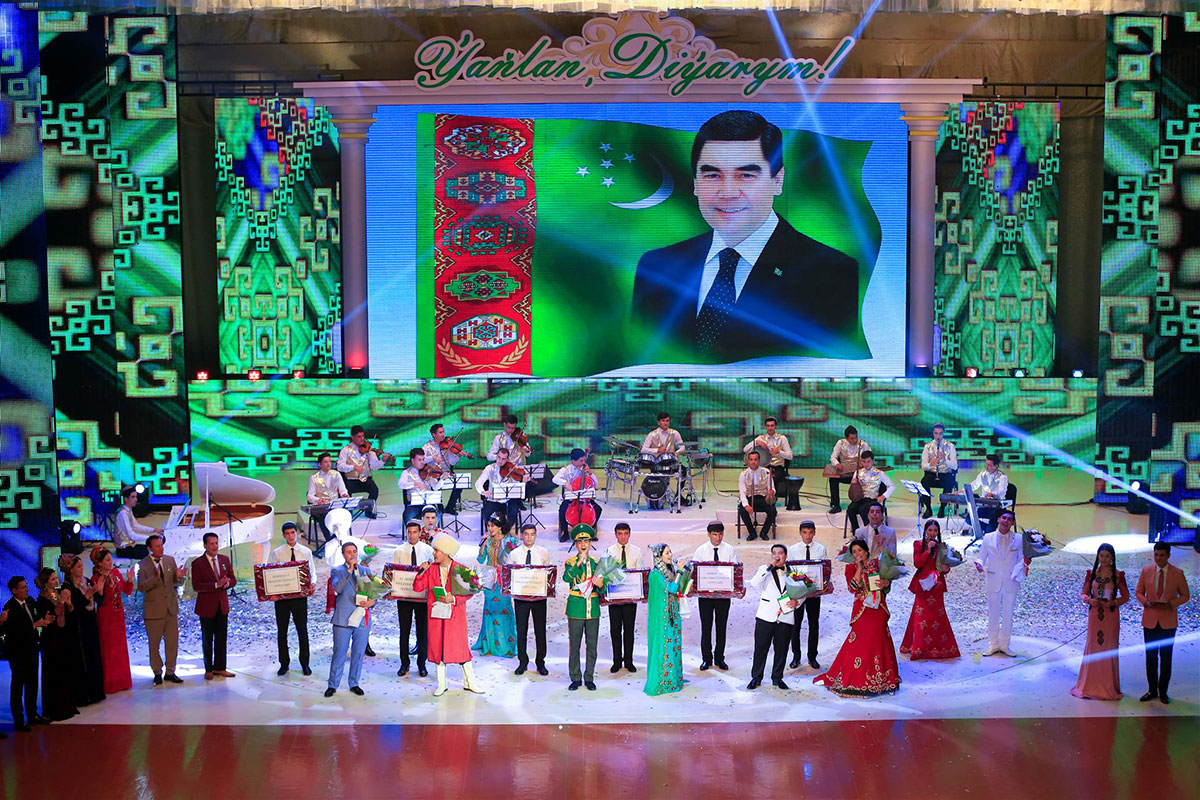 Во Дворце мукамов Государственного культурного центра состоялся заключительный тур телевизионного конкурса самодеятельных молодых исполнителей «Yaňlan, Diyarym!». Организаторами творческого марафона выступили Министерство культуры, Государственный комитет Туркменистана по телевидению радиовещанию и кинематографии, хякимлики всех велаятов и столицы. В трёх этапах конкурсного марафона приняли участие свыше 800 исполнителей. По условиям состязания на суд профессионального жюри были представлены разножанровые вокальные произведения. Участники могли проявить свои таланты в исполнении классики, народных и авторских песен, произведений собственного сочинения. Жюри оценивало конкурсантов по таким критериям, как вокальные данные, мастерство и оригинальность исполнения, а также артистизм. А для зрителей состоявшийся творческий марафон стал праздником песни, познакомившим с молодыми дарованиями – будущим нашего вокального искусства. 12 лучших молодых исполнителей – 8 юношей и 4 девушки получили возможность принять участие в заключительном гала-концерте конкурса. В концертной программе нынешнего года, девиз которого «Туркменистан - сердце Великого Шёлкового пути», нашла отражение тема преемственности традиций национального искусства. В своих выступлениях финалисты с воспевали Отчизну, историю туркменского народа, современные свершения. Также прозвучали произведения о красоте родной природы и великолепии туркменской столицы. Отдельные исполнители остановили свой выбор на песнях, созданных современными туркменскими композиторами на слова поэтов-классиков. Тепло встретил зал популярные песни выдающегося туркменского маэстро Нуры Халмамедова, чьё 80-летие отмечается в нынешнем году. В программу финала были включены и произведения по мотивам известных дестанов. Классика музыкального искусства и любимые поколениями слушателей народные песни органично соединялись с современными эстрадными ритмами. К участию в гала-концерте были также приглашены победители конкурса минувшего года, для которых «Ýaňlan, Diyarym!» стал трамплином в насыщенную творческую жизнь. Оригинальная аранжировка песенно-музыкальных композиций и нестандартная исполнительская манера самодеятельных артистов были по достоинству оценены зрителями. В завершение праздника песни состоялось подведение итогов и объявление победителей конкурса «Ýaňlan, Diýarym!». Под бурные овации присутствующих были объявлены имена победителей творческого состязания, которые стали обладателями специальных дипломов и премий от имени Президента Туркменистана.