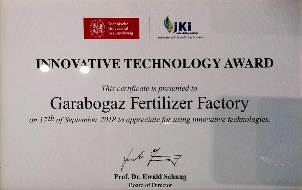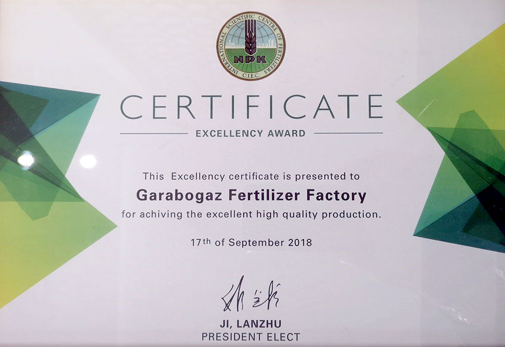 Представители международных организаций, принявшие участие в открытии завода «Гарабогазкарбамид» вручили руководству нового газохимического комплекса сертификаты, удостоверяющие качество его продукции, эффективность производства и инновационные технологии. В частности, президент Международного научного центра по удобрениям (CIEC), профессор экологических наук Цзи Ланьчжу отметил, что деятельность представляемой им организации нацелена на поддержание экологически безопасных промышленных объектов, выпускающих минеральную продукцию. Он высоко оценил работу, проводимую на данном направлении в Туркменистане, и вручил директору завода Сертификат Международного научного центра по удобрениям, удостоверяющий высокое качество продукции на новом газохимическом комплексе. Гость поздравил главу государства с успехами, достигнутыми Туркменистаном в области реализации безопасных для окружающей среды проектов, использования в производственных сферах чистых технологий. Представитель Брауншвейгского технического университета (Германия), г-н доктор Мирей Ван Оверстратен подчеркнул, что данный проект – один из лучших в мире, в его реализации были учтены самые передовые наукоемкие технологии, применяемые в этой области. Учитывая глобальный спрос на качественную минеральную продукцию, отвечающую высоким международным стандартам, ввод предприятия в эксплуатацию расширит возможности страны как поставщика азотных удобрений в больших объемах. Отметив, что газохимический комплекс признан Федеральным научно-исследовательским центром культивируемых растений Германии как крупное инновационное предприятие, доктор Мирей Ван Оверстратен вручил Сертификат признания использования инновационных технологий. Президент Международного общества исследований органического сельского хозяйства ISOFAR, профессор д-р Герольд Рахманн вручил Сертификат, признающий газохимический проект в Гарабогазе одним из самых эффективных и экологически устойчивых проектов.