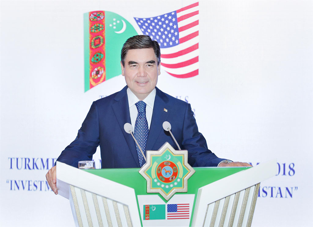 Президент Гурбангулы Бердымухамедов, находящийся с рабочим визитом в Соединённых Штатах Америки, принял участие в бизнес-форуме «Туркменистан – США». Встреча главы государства с представителями деловых кругов двух стран имеет огромное значение для дальнейшего развития торгово-экономических партнёрских контактов, открытия новых сфер приложения совместных усилий. Она знаменательна ещё и тем, что проходит в год 10-летия образования Делового совета «Туркменистан-США», который был создан по инициативе туркменского лидера, высказанной именно здесь, в Нью-Йорке, в Рокфеллер Центре, перед руководителями сотен американских компаний и концернов. И вот через десять лет у обеих сторон, накопивших достаточно большой опыт взаимодействия на туркменском рынке, есть возможность лично от первого лица страны услышать новые инициативы, конкретные приоритеты развития экономики Туркменистана на ближайшее время с тесной привязкой к задачам внутренней социальной политики и контексту региональной интеграции в Центральной Азии. Бизнесменов также привлекают предоставляемые нашей страной весьма выгодные льготы для иностранных инвесторов, что укрепило стремление представителей международных деловых кругов к нынешней встрече, в которой кроме американских бизнесменов изъявили желание принять участие крупные компании из других стран, например, Канады и Великобритании. Открыл бизнес-форум, состоявшийся в отеле «Mandarin Oriental», исполнительный директор Делового совета «Туркменистан-США» Эрик Стюарт. Выразив глубокую признательность Президенту Гурбангулы Бердымухамедову за уделенное для встречи время, г-н Стюарт поздравил главу государства с выступлением на 73-й сессии Генеральной Ассамблеи ООН, в ходе которой были выдвинуты новые предложения Туркменистана по решению глобальных вопросов современности и международному сотрудничеству. Отмечая имеющийся огромный интерес ведущих американских компаний к углублению многогранного партнёрства, Эрик Стюарт подтвердил твёрдое намерение бизнес-кругов США расширять своё присутствие на туркменском рынке и принимать самое деятельное участие в реализации масштабных государственных программ в интересах народа страны, на благо всего региона Центральной Азии, укрепления мира и доверия на планете. Слово предоставляется Президенту Туркменистана. Прежде всего, глава государства выразил признательность американским партнёрам за инициативу организации этой встречи, предоставляющей хорошую возможность для обмена мнениями о возможностях и перспективах туркмено-американского сотрудничества в экономической сфере. Приветствуя собравшихся в зале руководителей и представителей американских компаний, которые уже не первый год сотрудничают с нашей страной, а также бизнесменов, проявляющих интерес к совместной работе с туркменскими партнёрами, глава государства сказал, что столь представительный состав форума рассматривает как стремление американского бизнес-сообщества к расширению взаимовыгодных контактов с Туркменистаном. Отметив, что сегодняшняя встреча в рамках Делового совета «Туркменистан-США» проходит в год десятилетия с момента основания этой структуры, Президент Гурбангулы Бердымухамедов подчеркнул, что за это время было сделано немало. Деловой совет превратился в важный, дейст