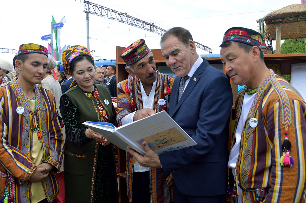 Специальный поезд, на котором творческая делегация нашей страны направилась с культурной миссией в Республику Таджикистан, последовал через территорию Узбекистана. На вокзале города Термез состоялась церемония встречи, в которой приняли участие представители сферы культуры, общественности, узбекских СМИ, а также туркменской диаспоры, мастера искусств. Выступившие на торжестве представители творческой интеллигенции двух стран отметили позитивную динамику многоформатного туркмено-узбекского взаимодействия и выразили уверенность, что активизация культурных связей послужит расширению добрососедских отношений и гуманитарного диалога. Представители Узбекистана подчеркнули значимость проводимой Туркменистаном работы по популяризации в мире исторического наследия, ментальных черт, а также современных достижений туркменского народа. Известные исполнители и хореографические коллективы нашей страны представили яркие концертные номера, отразившие традиции преемственности и богатство стилистической палитры национального искусства. Представители культуры дружественной страны познакомили туркменских гостей с музыкальным творчеством узбекского народа. Финальным аккордом торжества в Термезе стало исполнение танца куштдепди. Участники мероприятия также смогли ознакомиться с книжной экспозицией, почётное место в которой заняли труды Президента Гурбангулы Бердымухамедова. Сегодня же туркменская творческая делегация прибыла в Республику Таджикистан. На перроне вокзала Душанбе для посланцев туркменской культуры был организован торжественный приём. Танцевальные коллективы двух стран выступили в импровизированном концерте, завершившемся энергичным и жизнеутверждающим танцем куштдепди. 15 октября в Душанбе состоится церемония открытия Дней культуры Туркменистана в Республике Таджикистан.
