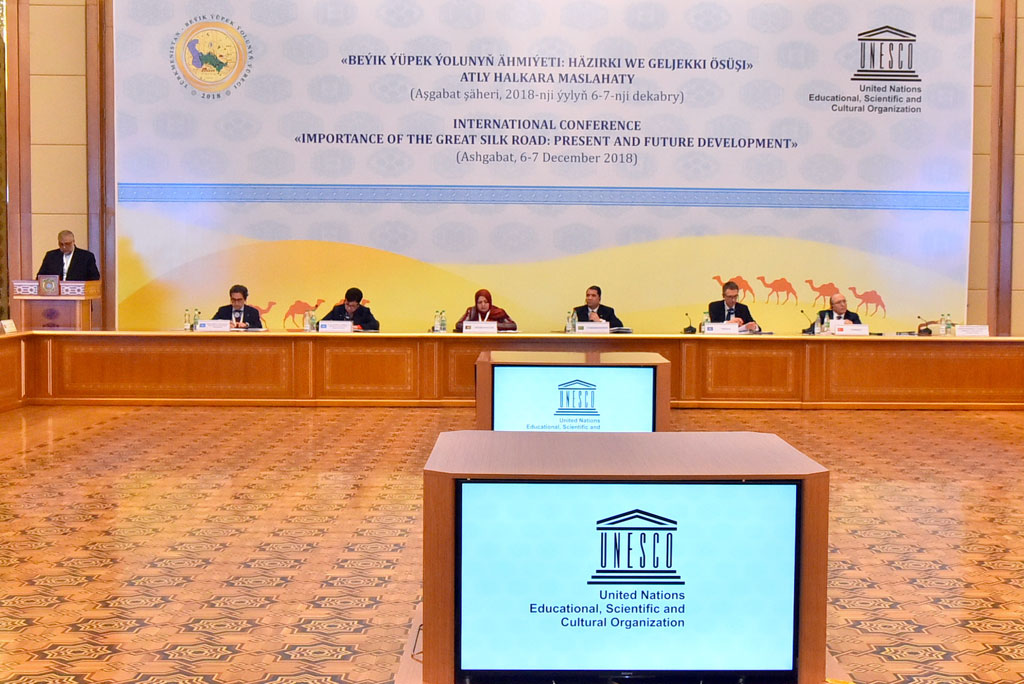 В отеле «Йылдыз» начала работу Международная конференция «Значение Великого Шёлкового пути: настоящее и будущее развитие». Нынешний форум, организованный Правительством Туркменистана в сотрудничестве с ЮНЕСКО, призван продемонстрировать важность и значимость Великого Шёлкового пути для устойчивого развития, раскрыть потенциал общего наследия этого легендарного маршрута для поддержания межкультурного диалога, показать каким значимым может быть его вклад в ЦУР. В конференции принимают участие министры, представители высокого уровня и эксперты из около 50 стран, в том числе Афганистана, Армении, Азербайджана, Бруней-Даруссалама, Камбоджи, Китая, Египта, Грузии, Греции, Индии, Индонезии, Ирана, Иордании, Кении, Ирака, Италии, Японии, КНДР, Республики Корея, Кувейта, Малайзии, Монголии, Мозамбика, Непала, Филиппин, Катара, Испании, Шри Ланки, Российской Федерации, Саудовской Аравии, Судана, Сирии, ОАЭ и др. С вниманием заслушали участники и гости конференции приветственное Обращение Президента Туркменистана, в котором Гурбангулы Бердымухамедов отметил, что проводимая работа по изучению и популяризации исторического значения Великого Шёлкового пути становится убедительным свидетельством торжества принципов гуманизма и добрососедства. О возрождении в современных условиях этого древнего маршрута свидетельствует развёрнутое масштабное строительство стальных и автомобильных дорог, мостов, объектов транспортно-логистической инфраструктуры, проведение международных форумов, посвящённых вопросам сотрудничества в вышеназванной сфере, подчеркнул лидер нации. Инновационные технологии и подходы к развитию торговли и взаимосвязи по Шелковому пути вынесены в один из тематических разделов конференции, на которой также рассматриваются история и возрождение этой трассы, политика и передовая практика расположенных вдоль неё стран для достижения повестки дня ООН 2030. В своей книге «Туркменистан – сердце Великого Шелкового пути» Президент Гурбангулы Бердымухамедов отметил, что одна из основополагающих ролей в зарождении и активном функционировании этого Пути, каждая ветвь которого достойна включения в Список Всемирного наследия ЮНЕСКО, принадлежит и туркменскому народу. В этом направлении Туркменистан также ведёт активную работу в рамках транснационального проекта, объявленного ЮНЕСКО, - «Памятники Великого Шелкового пути». В настоящее время 25 историко-культурных памятников Туркменистана, расположенных вдоль Великого Шелкового пути, предложены к номинации в Список Всемирного культурного наследия. Кроме того, сотрудничество Туркменистана с Организацией Объединённых Наций включает проекты и программы в области образования, науки и культуры, укрепление связей между народами и по многим другим направлениям. В этой связи Постоянный координатор ООН в Туркменистане Елена Панова в своём выступлении отметила, что ООН оказывает помощь нашей стране в усилении институционального и человеческого потенциала для преобразования инвестиций в инфраструктуру устойчивого развития. Она также процитировала Генерального секретаря ООН Антонио Гутерреша, который в одном из своих недавних заявлений призвал мир ближе ознакомиться с опытом древнего Шелкового пути и «превознести этот дух к новым высотам на благо всех». Г-жа Панова 