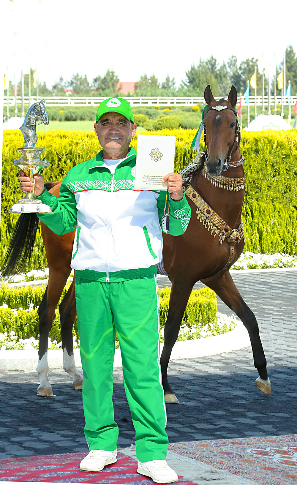В Ахалтекинском конном комплексе Президента Туркменистана, где при участии главы государства прошли торжества по случаю Национального праздника туркменского скакуна, состоялся финальный тур Международного конкурса красоты среди ахалтекинских коней. Такие финальные выводки самых грациозных и выдающихся по экстерьеру представителей породы придают празднеству утончённую эстетику, и каждый раз эти завораживающие ослепительной красотой показы впечатляют и восхищают заново и любителей коней, и искушённых знатоков. Десять отобранных на предварительных этапах лучших ахалтекинцев страны выводят на смотровую площадку. Каждый конь представляется жюри и публике: имя, возраст, сведения о родословной, владелец. Все финалисты продолжают ту или иную племенную линию, восходящую к знаменитым предкам, и многочисленные поклонники «небесных» скакунов могли оценить изумительную, точёную стать потомков прославленных коней, заложивших основные ветви в селекционном разведении чистокровных ахалтекинцев. С царственным достоинством демонстрировали кони свои внешние данные и выучку, покоряя безупречными линиями и пропорциями. И хотя у каждого есть своё представление о красоте, то в отношении ахалтекинцев трудно найти человека, который не замирал бы от восторга от их таинственной силы притяжения и очарования. Каких только эпитетов не удостоены они за века и тысячелетия! А туркмены ещё придали коням человеческие свойства и черты, видя в них не только природный темперамент, но и душевность, отзывчивость, интеллект и очень эмоциональный характер. Наступило время подвести итоги конкурса и объявить решение авторитетной судейской коллегии, в которую вошли отечественные и иностранные эксперты и коннозаводчики. Члены жюри, обсудив свои мнения и посовещавшись, назвали имя того, кто удостоен титула самого красивого ахалтекинского скакуна 2019 года. Итак, им признан золотисто-гнедой Парасат из Ахалтекинского конного комплекса Президента Туркменистана.