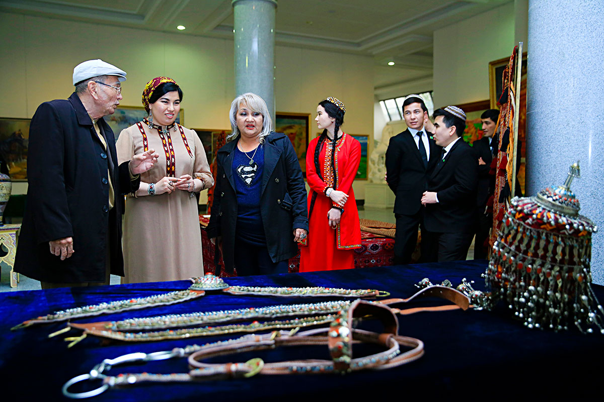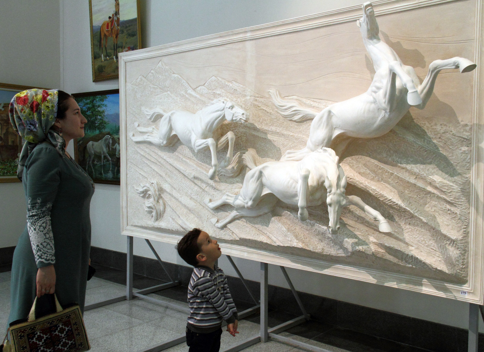 В ходе торжеств в Ахалтекинском конном комплексе Президента Туркменистана по случае Национального праздника туркменского скакуна были объявлены имена победителей творческого конкурса на художественное воплощение скакуна в произведениях изобразительного и декоративно-прикладного искусства, полиграфии, дизайна. Лучшие работы были выбраны в соответствии с номинациями – самый искусный ковёр, украшения для скакуна, лучшее живописное и скульптурное изображение коня, а также издательские и телевизионные проекты. Главная идея этого конкурса – показать роль этого красивого и умного существа в жизни туркменского народа. Главные призы от имени Президента Гурбангулы Бердымухамедова были вручены следующим победителям: художнику ковра, народному художнику Туркменистана Ада Гутлыеву – полотно «Ровач»; преподавателю кафедры декоративно-прикладного искусства Государственной академии художеств Туркменистана (ГАХТ) Айджемал Чарыевой – ансамбль конских ювелирных украшений и гупба; студенту 6 курса кафедры живописи ГАХТ Мыратмергену Кулыеву – картина «Ода коню»; преподавателю Туркменской государственной специальной художественной школы при ГАХТ Чарымырату Аманову – скульптура «Со стремительностью процветания»; преподавателю кафедры дизайна ГАХТ Хошгелди Атасапарову – фотоработы под названием «Райские кони»; оператору канала «Яшлык» Государственного комитета по телевидению, радиовещанию и кинематографии Хангелди Шазадаеву – видеоролик «Скакун». Каждый из этих авторов создал удивительный образ, в котором соединяются реальность и фантазия как сочетаются земное и небесное в самом коне, но во всех работах отражена бесконечная и трепетная любовь народа к этим бесподобным существам. Вот, например, ковёр «Ровач». В нём все сразу узнают жеребёнка, наречённого Президентом Гурбангулы Бердымухамедовым этим именем, ставшим знаковым для нашей эпохи. На ковре также вытканы строки стихотворения главы государства «Ровач» и изображена радуга, которая отражающаяся переливами цветов в узорах, обрамляющих основное поле, в ярких красках весеннего луга, на котором изображён жеребёнок. Ювелирный комплект – ажурные конские украшения и девичий головной убор гупба отсылают нас к преданиям об отважных туркменских воительницах, которые скакали на коне не хуже земляков-мужчин. И по мнению некоторых исследователей, амазонки, некогда жившие на территории нашей страны, вовсе не миф. Многоплановая картина «Ода коню» воплотила в себе исторические параллели и образы скакуна в разных видах искусства – от древнего Пазырыкского ковра и античных нисийских ритонов до поэзии и симфонической музыки. Скульптурная композиция «Со стремительностью процветания» полна динамики и экспрессии. Неудержимое движение коней здесь передаёт ту энергию, с которой страна достигает колоссальных успехов в своём развитии.