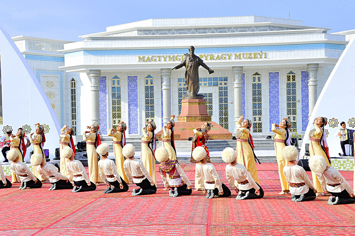 В административном центре этрапа Махтумкули состоялось торжественное открытие Недели культуры-2019. Масштабный творческий форум, проводимый в различных регионах Туркменистана, нацелен на сохранение и приумножение духовного богатства нации. Эта ежегодная акция позволяет представить во всем многообразии историко-культурное наследие нашей страны. Вместе с тем, она демонстрирует яркую палитру современной туркменской культуры, отражая все виды национального искусства – оперного и музыкально-песенного, кинематографического и театрального, изобразительного и декоративно-прикладного, литературы и народного творчества. Примечательно, что именно в Балканском велаяте было положено начало этой замечательной традиции. Как известно, местом проведения первой Недели культуры в 2013 году стала Национальная туристическая зона «Аваза». И вот теперь форум принимает ещё один живописный уголок туркменской земли – этрап Махтумкули, носящий имя великого туркменского поэта и мыслителя, чьё 295-летие отмечается в нынешнем году. Творческое наследие Махтумкули Фраги – большой, яркий, самобытный вклад туркменского народа в мировую культуру. Созданные около трёх столетий назад произведения и поныне не утратили своей актуальности. Церемония открытия Недели культуры-2019 состоялась сегодня утром в городе Махтумкули, на площади перед культурно-мемориальным комплексом, центром которого является Музей Махтумкули Фраги, где собрались многочисленные горожане и гости торжества. В составе делегаций, участвующих в форуме, – известные театральные артисты, эстрадные и народные исполнители, специалисты музейного и библиотечного дела, художники и писатели, профессиональные ансамбли и фольклорно-этнографические группы со всех регионов страны. В торжественной обстановке зачитывается приветственное Обращение Президента Туркменистана Гурбангулы Бердымухамедова. Затем состоялся концерт, в котором выступили мастера искусств и популярные творческие коллективы нашей страны. Участники форума посетили Музей Махтумкули Фраги. Как известно, Постановление о создании этого культурно-мемориального комплекса было подписано Президентом Гурбангулы Бердымухамедовым в мае 2014 года, когда широко отмечалось 290-летие поэта, чьи бессмертные произведения, изданные на многих языках, стали зримым свидетельством огромного уважения к мастеру художественного слова, почитания во всем мире его литературного наследия, значение которого выходит далеко за пределы национальных границ. И также символично, что первых посетителей обновлённый Музей принял осенью 2015 года, ознаменованном 20-летием нейтралитета Туркменистана. Экспозиция Музея в целом предоставляет возможность ознакомиться с культурно-интеллектуальной средой, взрастившей Махтумкули, осознать особую роль поэта в формировании национальной культуры. Своеобразной иллюстрацией тому служат оформленные здесь на высоком художественном уровне красочные диорамы. Так, одна из них изображает занятия Махтумкули в медресе Ширгази-хана. Вторая диорама запечатлела молодого поэта под легендарной чинарой в момент популярного на Востоке творческого состязания. В представленных здесь образах можно узнать отца Махтумкули – выдающегося поэта и философа Довлетмаммеда Азади, а также Дурды шахира, Човдур хана и других из
