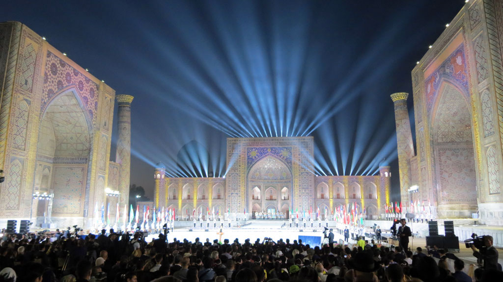 В Самарканде состоялась торжественная церемония открытия XII Международного музыкального фестиваля «Шарк тароналари - 2019» («Мелодии Востока»). На площади Регистан, знаменитой средневековым архитектурным ансамблем из трех медресе, выступил Президент Республики Узбекистан Шавкат Мирзиёев, пожелавший участникам фестиваля успешных выступлений и ярких успехов. После этого к участникам творческого форума обратилась Генеральный директор ЮНЕСКО Одри Азуле. Именно под эгидой этой международной организации и проводится фестиваль «Шарк тароналари». Церемонию продолжили выступления творческих коллективов из Узбекистана и стран-соседей. Зрителей порадовали студенты Ташкентской национальной высшей школы танца и хореографии, танцевально-вокальные группы «Тумор», «Новбахор» и «Навруз», студенты профильных училищ из Навои, Ферганы и Намангана. Помимо этого, со сцены на площади Регистан прозвучали две песни в исполнении Народной артистки России Надежды Кадышевой. Выступления участников фестиваля начнутся 27 августа и продлятся три дня. Напомним, что Туркменистан на культурном форуме в Узбекистане представляет музыкальная группа «Арчабиль», которая в первый же день выступит с оригинальными композициями и четырьмя туркменскими народными песнями. Кроме того, Заслуженный артист Туркменистана, дирижер, композитор и преподаватель Туркменской национальной консерватории Омар Игамов, будет на протяжении трех дней работать в составе жюри XII Международного музыкального фестиваля «Шарк тароналари - 2019». 30 августа состоится награждение победителей и призеров фестиваля. Параллельно с творческой частью форума пройдет международная научно-практическая конференция «Перспективы развития традиционного музыкального искусства народов Востока».