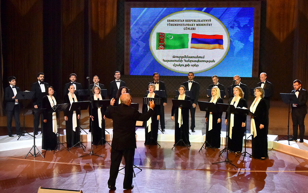 В Ашхабаде состоялась торжественная церемония открытия Дней культуры Республики Армения в Туркменистане. Её предварила встреча с членами официальной делегации дружественной страны, состоявшаяся в Министерстве культуры, в ходе которой обсуждены перспективы туркмено-армянского сотрудничества в культурно-гуманитарной сфере. Официальная церемония открытия Дней культуры Республики Армения состоялась во Дворце мукамов Государственного культурного центра, где собрались представители творческой интеллигенции, аккредитованных в Туркменистане дипломатических миссий, средств массовой информации, молодёжь. С приветствием к участникам торжества обратился заместители министров культуры обеих стран, которые, подчеркнув значимость нынешнего события, отметили, что сложившиеся дружественные отношения позволяют успешно наращивать многоплановое партнёрство. Собравшиеся выразили признательность лидерам Туркменистана и Армении за проводимую политику, нацеленную на упрочение гуманитарного диалога, сближение и взаимопонимание туркменского и армянского народов. По завершении торжественной части состоялся концерт Ереванского государственного камерного хора, в программу выступления которого вошли произведения из сокровищницы армянской и мировой музыкальной классики. В рамках Дней культуры также состоятся выставка экспонатов национальной галереи Армении в Музее изобразительных искусств, а в Государственной академии художеств – встреча со специалистами Терянского культурного центра, а также показ кинофильмов армянских режиссёров.