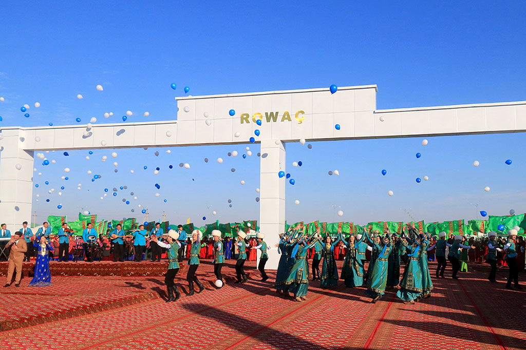 По поручению Президента Гурбангулы Бердымухамедова, хяким Балканского велаята Я.Гылыджов принял участие в торжествах по случаю открытия нового современного села Rowaç (Процветание), построенного в этрапе Сердар. Это событие – ещё одна знаковая веха на пути реализации Национальной программы по преобразованию социально-бытовых условий населения сёл, посёлков, городов этрапов и этрапских центров на период до 2020 года в новой редакции. Как известно, в рамках данной программы крупные инвестиции направляются на формирование в регионах современной социально-экономической инфраструктуры, призванной обеспечить наиболее благоприятные условия для жизни туркменистанцев. Конкретный результат масштабных преобразований – новые сёла, выросшие в различных регионах страны. И вот сегодня – очередная архитектурно-строительная премьера, ставшая зримым воплощением государственной политики, приоритетом которой выступает всемерная забота о благополучии народа, каждой семьи, каждого гражданина страны. С раннего утра здесь царит атмосфера эмоционального подъёма. Повсюду – флаги, транспаранты, разноцветные воздушные шары, развёрнуты выставки декоративно-прикладного искусства. Организованы выступления эстрадных исполнителей, народных певцов и музыкантов, фольклорных коллективов в сопровождении зажигательных ритмов туркменских мелодий. В торжествах приняли участие руководители администрации региона, депутаты Меджлиса, представители общественных организаций, многочисленные местные жители, старейшины и молодёжь. Наступает кульминационный момент – торжественно перерезается лента. Затем участники торжества проследовали к жилым домам, которые стройными рядами поднялись вдоль широких улиц. Всего в новом селе возведены 268 трёх- и четырёхкомнатных комфортабельных домов. Здесь развернулся большой туркменский той, неповторимый, самобытный колорит которому придают красочные инсценировки. Гостей хлебом-солью встречают счастливые новосёлы и приглашают их в свои дома, при строительстве которых учитывались особенности сельского образа жизни и традиционного быта туркменской семьи. Здесь предусмотрены приусадебный участок и огород, место для содержания домашнего скота, навес. Другими словами, созданы все условия для проживания, в том числе террасы, просторные уютные комнаты, обустроенные кухни, а также гаражи и необходимые инженерно-технические коммуникации. Обеспечение туркменистанцев комфортным жильём – одна из приоритетных задач Программы социально-экономического развития страны на 2019-2025 годы. Растут масштабы жилищного строительства в городах, этрапах и сельской местности. Сегодня любой сельчанин может возвести себе дом на выгодных условиях ипотечного кредитования и долевого строительства. Построенный здесь Дом здоровья оснащён новейшим специализированным оборудованием, что даёт возможность оказывать населению широкий спектр медицинских услуг. Хорошим подарком самым юным жителям села стал прекрасный детский сад, который могут посещать 160 малышей. Здесь созданы все условия для гармоничного развития и интересного досуга ребят. В здании разместились просторные светлые помещения, в том числе уютные спальни, кабинеты для занятий, музыкальный и спортивный залы. На прилегающей благоустроенной территории расположились 