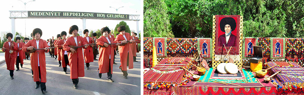 В административном центре Дашогузского велаята состоялось торжественное открытие Недели культуры. Проводимый ежегодно форум приурочивается к широко отмечаемому в нашей стране Дню работников культуры и искусства, а также поэзии Махтумкули Фраги, стимулируя профессиональный рост представителей творческого цеха. Впервые Неделя культуры, в соответствии с Постановлением Президента Туркменистана, была проведена в 2013 году в Национальной туристической зоне «Аваза». С той поры она поэтапно проходит в велаятах и столице страны. Организуемые в рамках Недели концерты юных певцов и музыкантов, выставки живописи, издательской продукции и музейных экспонатов, кинопоказы, вечера поэзии, конференции раскрывают разные грани туркменской культуры. Важно также отметить, что местом проведения акции становятся не только центры регионов, но и этрапы, современные сельские дома культуры, в которых созданы все условия для гармоничного развития молодёжи, досуга сельчан. Церемония открытия Недели культуры-2020 состоялась на площади «Гёроглы» перед Дворцом Рухыет. Это место хорошо знакомо не только работникам профильной сферы, но и многим зарубежным гостям нашей страны. Здесь в 2014 году прошло открытие аналогичной акции с участием представителей иностранных государств, стартовали праздничные мероприятия в рамках фестиваля дружбы между народами Туркменистана и Узбекистана, в 2016 году Дашогуз в качестве культурной столицы Содружества Независимых Государств встречал творческих деятелей из разных стран СНГ. Улица Гёроглы, на которой расположена одноимённая площадь – из числа самых протяжённых и красивых магистралей города. Вдоль неё разместились здания Государственного музыкально-драматического театра имени Нурмухаммеда Андалиба, Дворца Рухыет, центральной мечети велаята, учебно-воспитательного комплекса, крупный новый зелёный массив и др. Сегодня площадь «Гёроглы» особенно нарядна. Повсюду звучит музыка, царит атмосфера необычайного творческого подъёма. В выполненных в восточном стиле павильонах, размещены экспозиции, рассказывающие о самобытных традициях туркмен, его богатейшем культурном наследии, искусстве. Во всём многообразии на выставке представлены народные ремёсла, образцы национальной одежды и натуральные ткани, ковры и кошмы, керамические и ювелирные изделия, музыкальные инструменты, художественные полотна и скульптурные композиции. Этот вернисаж соседствует со сценической площадкой, сооруженной непосредственно перед памятником герою туркменского эпоса - Гёроглы, изображенным на стремительном коне. В ярком праздничном шествии на площади появляются известные театральные артисты, эстрадные и народные исполнители, специалисты музейного и библиотечного дела, художники и поэты, профессиональные ансамбли и популярные фольклорные группы. В торжестве приняли участие члены Правительства, представители Министерства культуры и отраслевых ведомств, общественности велаята, средств массовой информации, старейшины и молодёжь. С большим вниманием собравшиеся заслушали приветственное Обращение Президента Гурбангулы Бердымухамедова. Торжество продолжилось праздничным представлением с участием мастеров искусств, молодых исполнителей – победителей различных общенациональных творческих конкурсов, популярных музык