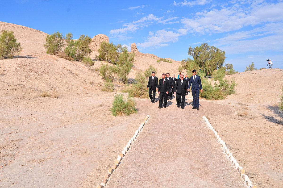 Сегодня в Дашогузском велаяте, в соответствии с программой Недели культуры, для участников творческой акции было предусмотрено посещение расположенных на территории региона уникальных археологических памятников, часть которых включена в Список Всемирного наследия ЮНЕСКО. В их числе – мавзолеи Текеша и Иль-Арслана, Тюрабек-ханум, Наджмеддина Кубра, Султана Али, Пиряра Вели, минарет Кутлук Тимура в Куняургенче, древний город-крепость Замахшар и многие другие. В 2016 году завершились реставрационные работы на архитектурном комплексе Исмамут-ата в Дашогузском велаяте. Основанный в XI веке, он является одним из крупных религиозных и архитектурных памятников средневековой истории не только Туркменистана, но и Центральной Азии. В рамках ознакомительной экскурсии участники культурного форума посетили расположенный на территории нынешнего этрапа Гёроглы древний город Замахшар – родину выдающегося туркменского учёного-энциклопедиста, философа, богослова, филолога и литератора ХI–ХII веков Махмуда Замахшари, труды которого оказали значительное влияние на развитие мировой науки, а его мавзолей стал местом паломничества не только туркменистанцев, но и зарубежных гостей. Специалисты считают, что сохранившиеся до наших дней остатки города-крепости Замахшар представляют собой классический образец средневекового зодчества. Мощные стены и предвратные сооружения, фрагменты глинобитных башен и защитных рвов указывают на то, что Замахшар был важным центром торговли и науки на Великом Шёлковом пути, что также подтверждают письменные свидетельства того времени. Также сегодня на площади, расположенной на берегу озера Яшлар, состоялся красочный музыкальный праздник с участием воспитанников школ искусств Дашогузского велаята. Вдоль канала Шават, в популярной у горожан зоне отдыха площадью около семи с половиной гектаров, разместились концертная сцена, скульптурные композиции. Здесь были развёрнуты тематические выставки рисунков и поделок воспитанников городской и этрапских детских художественных школ. Юные исполнители порадовали гостей хореографическими и фольклорными номерами. Эстафету мероприятий творческого форума принял современный сельский Дом культуры в генешлике «Altyn ýol» этрапа имени С.А.Ниязова. Здесь прошла встреча, посвящённая вопросам развития киноискусства. Затем состоялся премьерный показ фильма «Beýik ýüpek ýoly», снятого по мотивам книги главы государства «Туркменистан – сердце Великого Шёлкового пути». Вечером торжества продолжились в центральной части Дашогуза, на площади Махтумкули. Здесь, у памятника великому туркменскому поэту состоялся литературный вечер. Программу второго дня Недели культуры завершил концерт мастеров искусств.