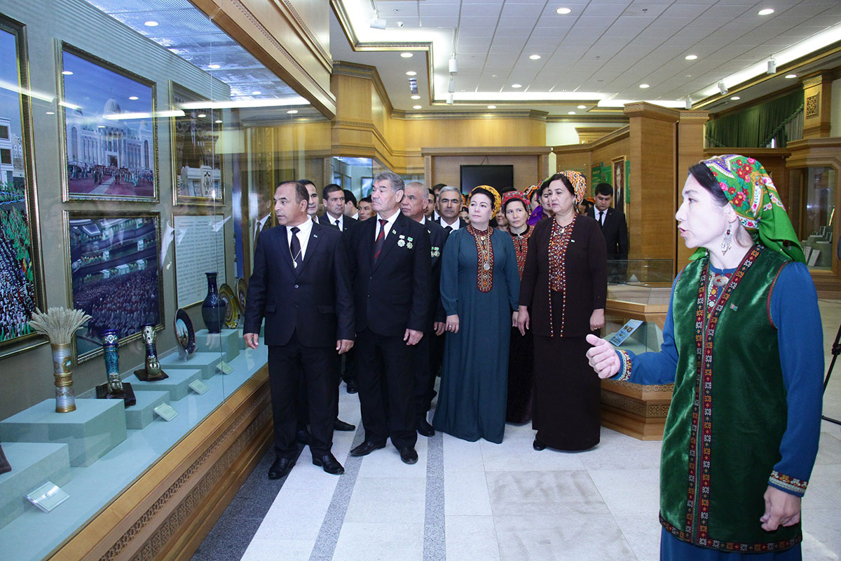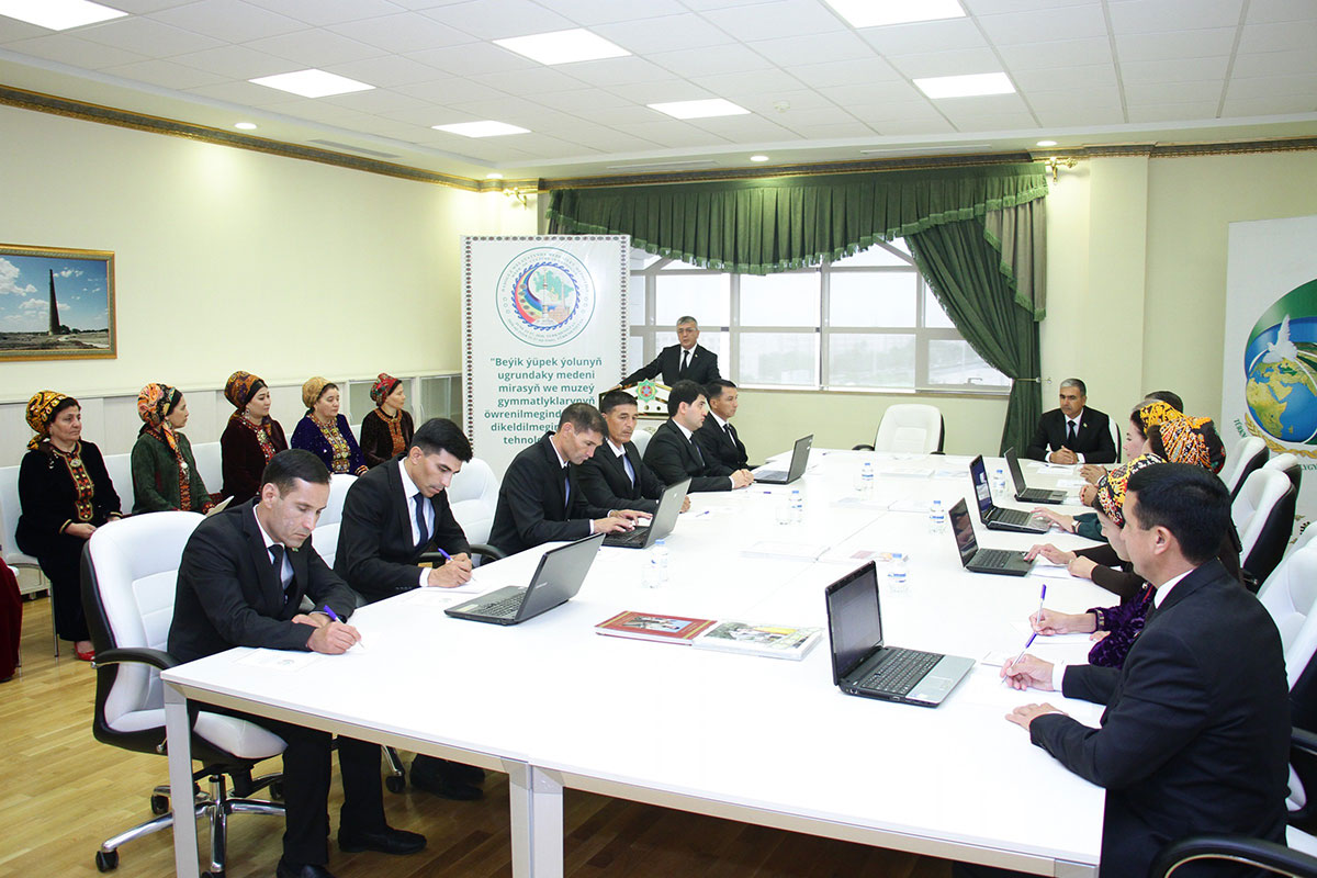В Дашогузском велаятском историко-краеведческом музее состоялось совещание сотрудников музеев и государственных историко-культурных заповедников страны. Этот крупнейший в северном регионе страны музей был построен в 2011 году. Здесь размещены археологическая и этнографическая экспозиции, галерея изобразительного искусства, павильоны, посвящённые природным достопримечательностям, а также современным достижениям региона. Всего в фондах музея – более восьми тысяч экспонатов. Участники совещания обсудили вопросы совершенствования деятельности, внедрения в профильную сферу цифровых технологий, в том числе возможности виртуального моделирования расположенных вдоль Великого Шёлкового пути памятников. Сохранившиеся на туркменской земле древние крепости, караван-сараи и по сей день вызывают интерес учёных мира. Участники совещания также затронули вопросы широкого внедрения современных технологий непосредственно в работу музеев и хранилищ, создания электронной базы учёта музейных ценностей, изучения с помощью цифровизации исторического ландшафта древних городов и др. Работники данной сферы побывали с поисковыми экспедициями на территории всех велаятов. В результате были найдены артефакты, отражающие быт местного населения в древние времена, в том числе образцы ремесленного производства и рукоделия, предметы домашнего обихода, имеющие историческую ценность. В музей Дашогузского велаята были переданы старинные кошмы и ткацкие инструменты, деревянное блюдо, фрагменты древних кирпичей с глазурным покрытием, маслобойка-джуваз, сосуды для хранения зерна и воды. Многие из этих находок были представлены в числе экспонатов посвящённой сегодняшнему событию выставки. В числе экспонатов – и обнаруженные при недавних археологических раскопках на территории Куняургенча орнаментированные терракотовые плитки и небольшие фрагменты облицовки стен с майоликовым покрытием.