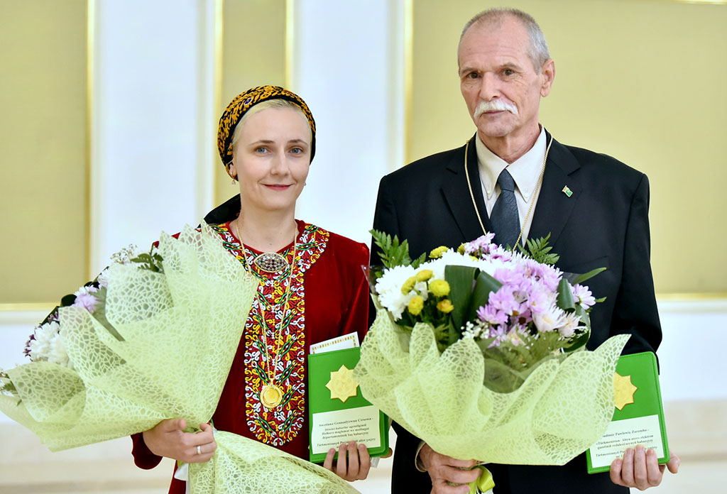 В столичном центре «Мизан» состоялась торжественная церемония чествования творческих работников, удостоенных почётных званий Туркменистана, а также вручения Президентских премий лауреатам конкурса «Türkmeniň Altyn asyry» среди деятелей литературы, культуры и искусства, молодых исполнителей и одарённых детей. В нынешнем году это важное мероприятие приурочено к широко отмечаемому в нашей стране празднику – Дню работников культуры и искусства, а также поэзии Махтумкули Фраги, что придало торжеству особый эмоциональный настрой. С огромным воодушевлением участники торжественной церемонии заслушали Обращение Президента Туркменистана, адресованное творческим работникам по случаю присвоения им почётных званий и присуждения престижной премии «Türkmeniň Altyn asyry». Зачитывается Указ Президента Туркменистана о присвоении почётных званий и Постановление о награждении победителей общенационального конкурса «Türkmeniň Altyn asyry». Один за другим поднимаются на сцену руководители творческих коллективов, поэты и прозаики, певцы и музыканты, мастера изобразительного искусства, представители СМИ и др. Награждённые выражали глубокую признательность туркменскому лидеру за создание всех условий для полноценной творческой деятельности, профессионального роста. Затем в столичном центре «Мизан» состоялся праздничный концерт с участием мастеров искусств и молодых исполнителей, лучших творческих коллективов страны.