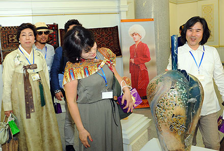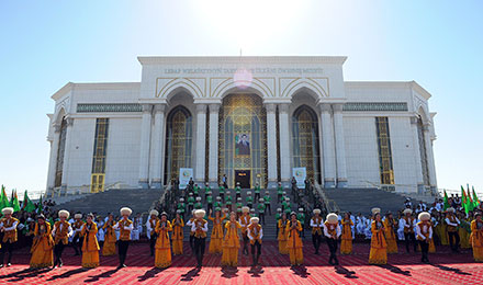 Туркменабат, 23 июня (ТДХ). Масштабными культурно-массовыми мероприятиями был ознаменован второй день Недели культуры, инициированной главой государства Гурбангулы Бердымухамедовым и призванной внести весомый вклад в динамичное развитие туркменской культуры, искусства и литературы, способствуя дальнейшему укреплению уз дружбы и братства между народами мира, вдохновляя деятелей культуры и искусства творить в созвучии с ритмами нынешней эпохи могущества и счастья. Этими высокими идеями были пронизаны и организованные в первой половине дня на празднично украшенной площади перед Дворцом Рухыет выступления детских песенно-танцевальных групп, прибывших из разных регионов страны. Зажигательная музыка, танцы и песни юных артистов вызвали восхищение у огромной аудитории зрителей. Детский праздник в рамках Недели культуры стал ярким подтверждением неиссякаемости родника национальных талантов. Став по инициативе лидера нации ежегодной традицией, нынешняя Неделя также нацелена на активизацию диалога туркменских деятелей культуры и искусства с их зарубежными коллегами, на дальнейшее обогащение новыми, современными произведениями всех видов национального искусства - музыкально-песенного, изобразительного и декоративно-прикладного, театрального, литературы и народного творчества. В этой связи важное значение имеет и открывшаяся в рамках Недели культуры в залах Историко-краеведческого музея Лебапского велаята Международная выставка искусств. Свои картины, изделия народно-прикладного и ювелирного искусства, национальную одежду и другие экспонаты представили зарубежные участники Недели культуры из США, России, Турции, Кореи, Финляндии, Узбекистана и других стран. Масштабный смотр также включил в себя работы членов Союза художников Туркменистана, экспонаты Государственного музея, Государственной академии художеств, Музея изобразительных искусств Туркменистана и др. Как отметили зарубежные участники Недели культуры, оригинальные живописные полотна, пронизанные светом любви к родной земле, отражающие удивительную красоту туркменской природы, грандиозные преобразования новой исторической эпохи, а также другие тематические экспозиции свидетельствуют о новом качественном уровне развития национального искусства, богатстве духовной жизни туркменского общества. В одном из залов музея был продемонстрирован документальный фильм, повествующий об историко-культурных памятниках, заповедниках, туристических маршрутах Лебапского велаята. В этом регионе древней туркменской земли находится более 200 архитектурных памятников разных эпох, в том числе средних веков – медресе Астана-баба в этрапе Атамырат, медресе Идрис-баба в Халачском этрапе, где учился великий туркменский поэт и мыслитель Махтумкули, караван-сарай Дая-хатын и другие. Большой интерес у зрителей вызвали кадры, рассказывающие о плато динозавров, пещерах, высокогорных пейзажах, растительном и животном мире Койтендагского и Амударьинского государственных заповедников и о старейшем в стране Репетекском государственном заповеднике. Все они являются туристическим маршрутом предприятия «Лебапсыяхат», где особой популярностью у зарубежных и отечественных туристов и путешественников пользуется тур «Сказочный Койтендаг». Город на берегу Амударьи в эт