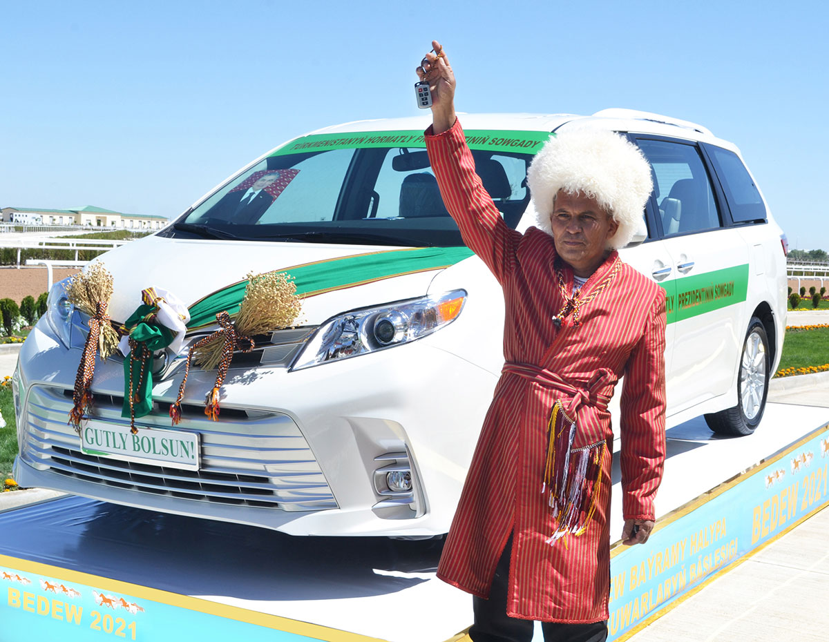 Главного приза Президента Туркменистана – легкового автомобиля – удостоился победитель финального забега среди жокеев-наставников С.Кулджанов.