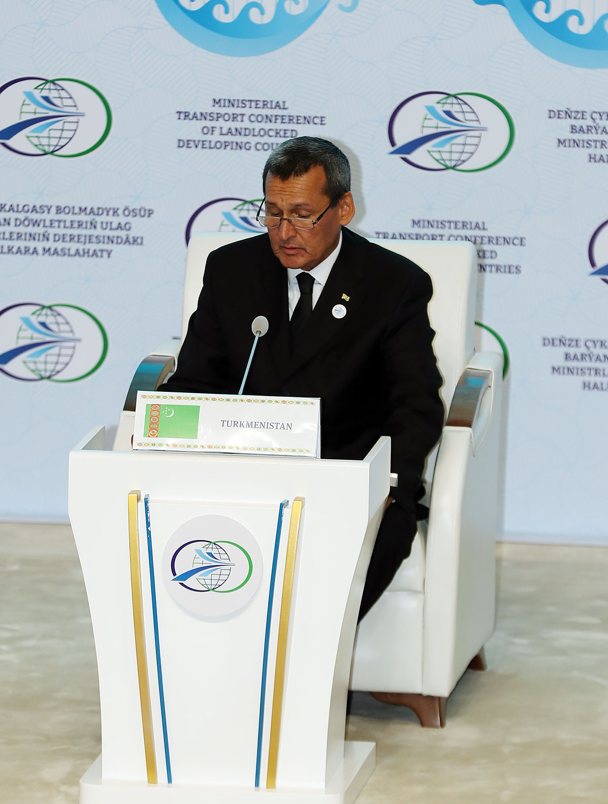 Занимая деятельную позицию в вопросах взаимодействия в этом направлении, в том числе в формате ООН и других авторитетных организаций, Туркменистан, будучи неизменно привержен своему внешнеполитическому курсу, основанному на принципах миролюбия, позитивного нейтралитета и конструктивного международного сотрудничества, инициирует и совместно с зарубежными партнёрами реализует крупные инфраструктурные проекты по формированию разветвлённой комбинированной современной транспортной инфраструктуры в региональном и трансконтинентальном масштабе. Всё это отвечает коренным интересам всех стран и народов и служит целям всеобщего благополучия, процветания и прогресса. Наглядным свидетельством тому стал нынешний форум.