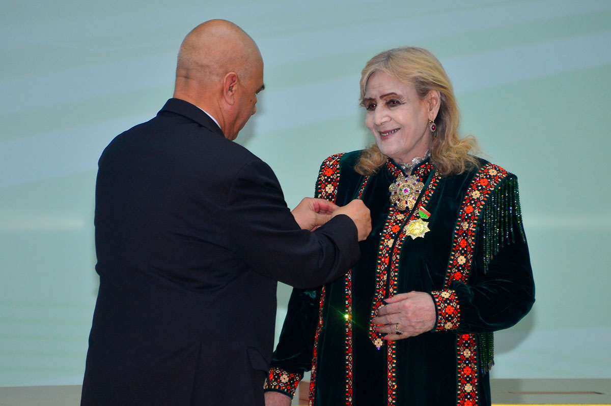 Затем Президент ГАТМ сообщил о принятом решении утвердить новый образец знака «Ynsanperwerligiň sarpasy», а также о подготовленном его проекте.