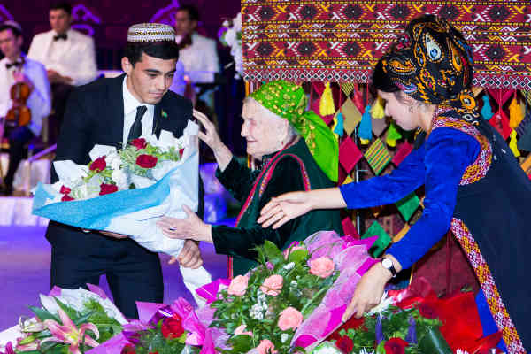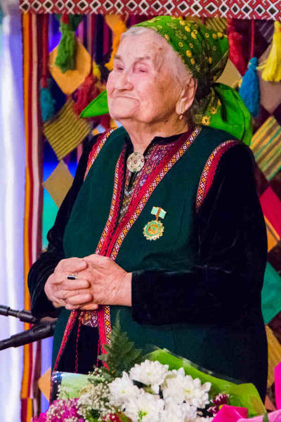 Ашхабад, 17 ноября (TDH). Сегодня во Дворцовом комплексе «Огузхан» Президент Гурбангулы Бердымухамедов вручил высокую государственную награду – орден «Garaşsyz Türkmenistana bolan beýik söygüsi üçin» – народной артистке Туркменистана Фахрие Алиевой. В торжественной церемонии приняли участие председатель Меджлиса, некоторые заместители Председателя Кабинета Министров, министр культуры, руководители комитетов национального парламента, а также Демократический партии, Партии промышленников и предпринимателей, Аграрной партии. Тепло поприветствовав наставника многих поколений театральных артистов, Президент Гурбангулы Бердымухамедов подчеркнул, что народная артистка Туркменистана, корифей сцены Фахрия Алиева, посвятившая всю свою творческую жизнь искусству, хорошо известна всем. На протяжении 65 лет она самоотверженно работала в Туркменском государственном академическом театре драмы имени Молланепеса, преданно служа нашему народу, сказал лидер нации. Алиева Фахрия, узбечка по национальности, родилась 1 июля 1922 года в Каахкинском этрапе, воспитывалась в многодетной семье. В 1941 году окончила Московский государственный институт театрального искусства имени Луначарского по специальности «драма и киноактер». С 1941 по 2006 год работала в ведущем театре нашей страны. Глава государства отметил неоценимый вклад талантливого мастера сцены в становление и совершенствование отечественного театра и кинематографа. Актриса создала множество ярких, незабываемых сценических образов, блистательно играла в фильмах, заслужив всенародное признание и любовь зрителей. Велики заслуги Фахрии Алиевой в развитии культуры, воспитании молодых дарований, мастеров сцены, продолжил лидер нации. Мы с глубочайшим почтением относится к мэтрам национального искусства, в эпоху могущества и счастья даём достойную оценку их добросовестному труду, сказал глава государства. Следуя этой благородной традиции, в Год почитания наследия, преобразования Отчизны ряд деятелей культуры, представителей творческой интеллигенции удостоены государственных наград. Затем лидер нации объявил собравшимся о награждении Фахрии Алиевой орденом «Garaşsyz Türkmenistana bolan beýik söýgüsi üçin» за большие успехи в укреплении независимости и суверенитета Отчизны, развитии отечественного искусства, культурных связей между Туркменистаном и другими странами, достойном воспитании молодого поколения, а также учитывая особые заслуги перед нашим суверенным государством и родным народом, многолетний добросовестный, самоотверженный образцовый труд. Поблагодарив за неоценимый вклад в национальное искусство, Президент Гурбангулы Бердымухамедов вручил видному мастеру сцены высокую государственную награду, пожелав ей крепкого здоровья, долголетия и огромного счастья. «Пусть прекрасные образы, созданные вами в туркменском театральном и киноискусстве, всегда служат образцом для молодых дарований!», – сказал лидер нации. Народная артистка Туркменистана выразила самую искреннюю признательность главе государства за высокую оценку её многолетнего труда, заботу и внимание, за активную деятельность по широкой популяризации туркменской культуры и национального искусства во всем мире. «Эту награду, - сказала Фахрия Алиева, - я расцениваю как признание труда всех тех, кто стоял у истоков современного о