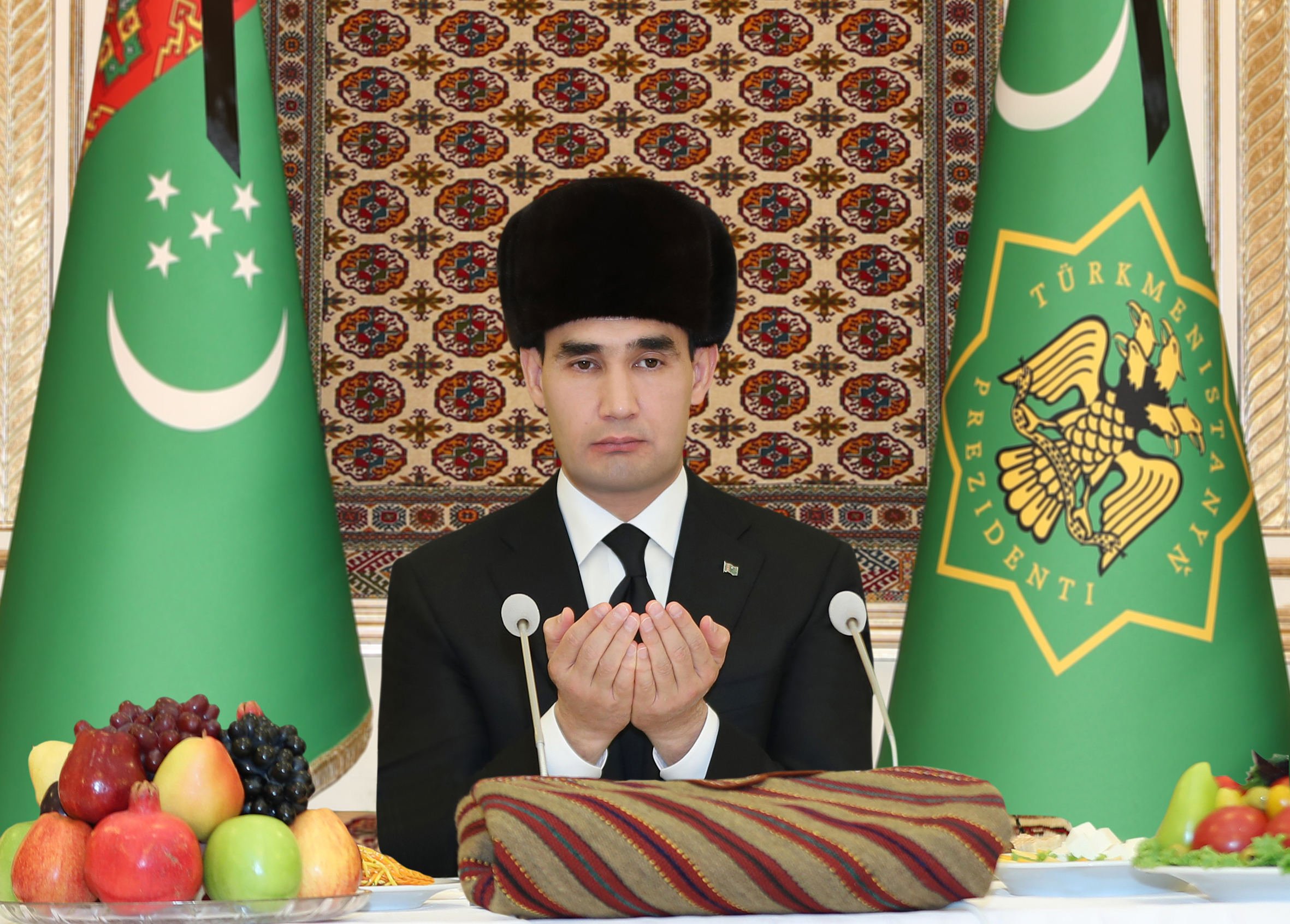 Затем муфтий Туркменистана прочитал молебен «тебярек» и благословил ритуальную трапезу.