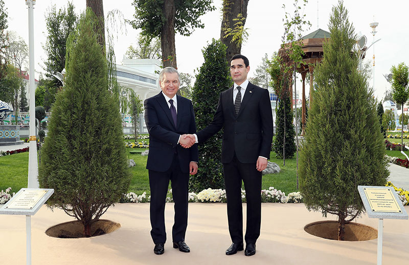В ходе церемонии главы двух государств посадили в парке молодые деревца, которые будут здесь расти как олицетворение туркмено-узбекской дружбы и братства.
