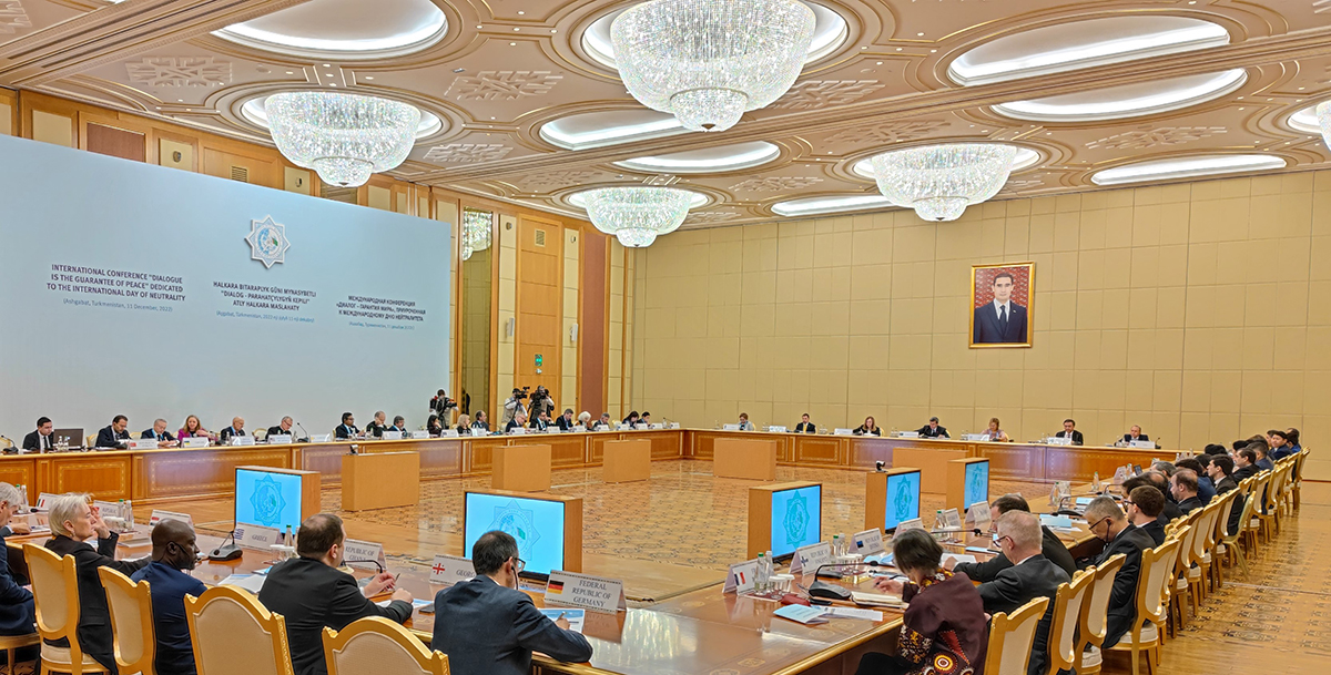 Сегодня по инициативе Президента Сердара Бердымухамедова в столичном отеле «Ýyldyz» состоялась Международная конференция «Диалог – гарантия мира», приуроченная к Международному дню нейтралитета и 27-й годовщине обретения Туркменистаном постоянного нейтрального статуса.