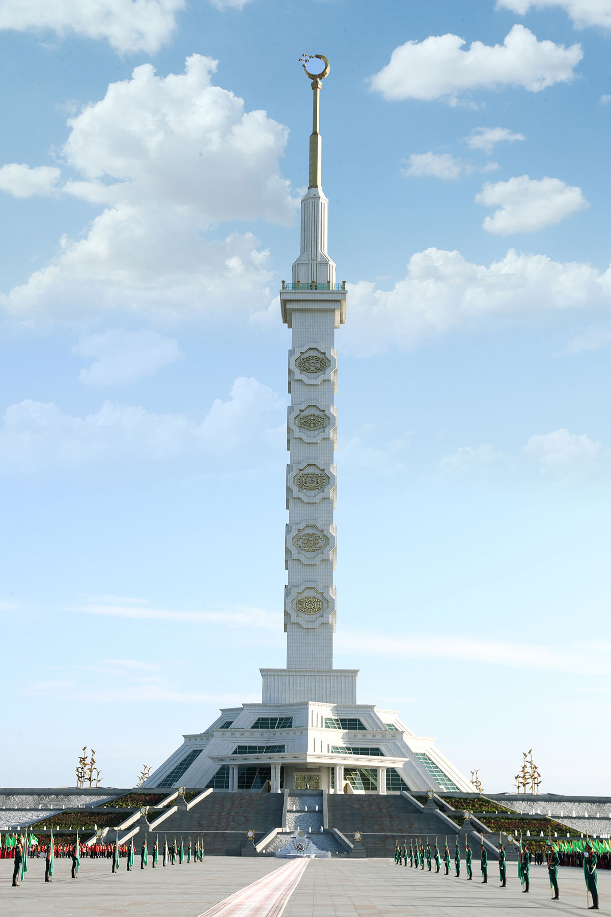 Подножие величественного Монумента покрылось ярким цветочным ковром, ставшим символичным отражением всей глубины патриотических чувств, испытываемых туркменистанцами за своё независимое нейтральное Отечество, за счастье свободно жить и трудиться на мирной земле предков, приумножая впечатляющие великие достижения в эру Возрождения новой эпохи могущественного государства.