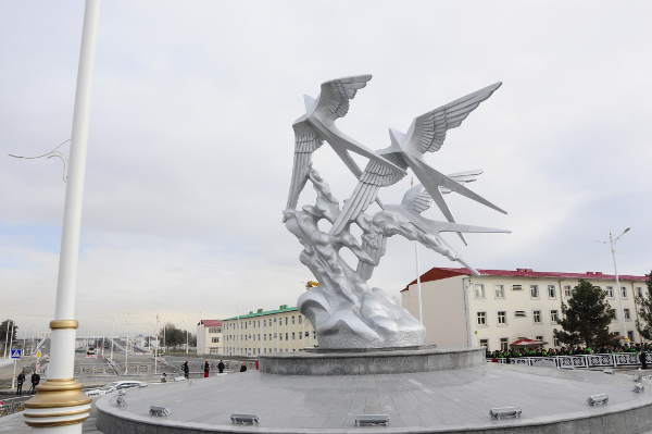 Праздничным подарком ашхабадцам в канун Дня нейтралитета стали массивные скульптурные композиции, возведенные на круговых развязках реконструированных автомагистралей – новых участках проспектов Н.Андалиба и Махтумкули. В их числе - монументально-декоративная ажурная башня, названная «Земля». Словно сотканный из сияющего металлического кружева шар на ее вершине символизирует нашу планету. Сетчатая конструкция глобуса напоминает нам о хрупкости Земли, которую мы должны беречь, утверждая мир и гармонию между странами, народами, человеком и природой. Шар поддерживается колонной, обнимающей его наверху, наподобие ладоней. А вся скульптура похоже на гигантский цветок, раскрывающийся навстречу солнцу. В другой композиции воплощена идея вечности бытия – в ее абстрактных формах угадываются и колесо жизни и символ бесконечности в виде восьмерки, передается динамика беспрерывного движения и устремленность человеческой мысли, пронзающей века и пространства. Следующая удивительная скульптура называется «Сплочённость». В художественной концепции этого сооружения творчески раскрывается мысль о том, как многие ручьи сливаются в один могучий поток, способный преодолеть все на своем пути. Но главенствующим образом в этой композиции выступает факел – как эмблема свободы, огня, света, жизни, правды, духа и разума, а также как знак преемственности традиций. Еще одна оригинальная пластическая композиция, имеющая изящную, несмотря на монументальность, «струнную» стилистику, воплощает рост и развитие, возрождение и обновление, трепетность и одновременно энергию жизни. Там, где встречаются проспекты Н.Андалиба и Махтумкули, картину перекрестка оживила огромная скульптура, изображающая ласточек. Она символизирует свободный полет духа, мысли, благородство искренних порывов. Оттого и в силуэте возносящихся к облакам птиц легко читаются очертания фигуры человека, которого манят вдаль еще неизведанные горизонты, зовут непокоренные высоты. К тому же, ласточка всегда считалась в народе вестником весны, добра, счастья, надежды, удачи. Считалось, что они гнездятся только в тех домах, где царит согласие. Это талисман домашнего уюта, верности в дружбе, приверженности истокам, при этом с ней ассоциируют и тягу к путешествиям. Шестой монумент - на кругу проспектов Махтумкули и Аба Аннаева – назван «Чемен» - «Букет». Простота и лаконичность его формы вместили в себя большую многозначность, ведь букет – это атрибут торжества, с ним мы связываем самые лучшие пожелания – счастья, любви, изобилия, здоровья, успехов. А еще – это символ объединения сердец, выражения искренних чувств, признательности и восхищения.