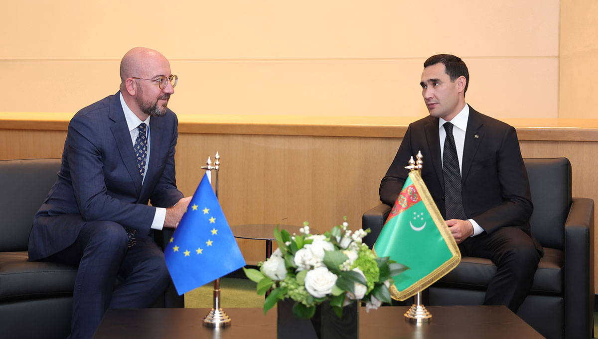Сегодня Президент Туркменистана Сердар Бердымухамедов, находящийся с рабочим визитом в Нью-Йорке в целях участия в 78-й сессии Генеральной Ассамблеи Организации Объединённых Наций, встретился с Председателем Европейского Совета Шарлем Мишелем.