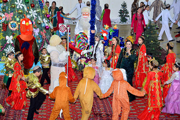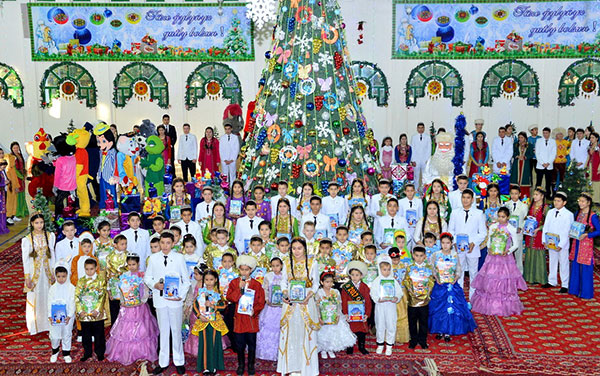 По сложившейся доброй традиции в преддверии наступающего Нового года во Дворце детей-сирот - «Döwletliler köşgi» - состоялось праздничное мероприятие, на котором его воспитанникам в торжественной обстановке от имени Президента Туркменистана Гурбангулы Бердымухамедова были вручены новогодние подарки. Всемерная забота о юном поколении туркменистанцев – один из важнейших аспектов социальной политики главы государства. В стране созданы все условия для того, чтобы обеспечить малышам счастливое детство. Благодаря такому трепетному отношению юные туркменистанцы, в том числе воспитанники «Döwletliler köşgi», принимают самое активное участие в престижных конкурсах и международных фестивалях. Многие из ребят являются призерами популярных творческих смотров, проводимых в нашей стране и за рубежом. Красочным украшением нынешнего предновогоднего торжества в «Döwletliler köşgi» стал большой концерт, который состоялся в нарядном, по-праздничному убранном зале, у сверкающей разноцветной мишурой и огнями пушистой красавицы-елки вокруг которой собрались воспитанники и педагоги Дворца, а также многочисленные гости, пожелавшие разделить с детьми радостное веселье. В гостях у ребят побывали популярные исполнители, артисты и, конечно же, любимые сказочные персонажи. Открыл праздничное представление Дед Мороз - Аяз баба, который исполнил веселую новогоднюю песню. Участники ансамбля «Джошгун» «Döwletliler köşgi», а также их друзья из ансамбля «Шатлык» Дворца детей и юношества представили задорные танцевальные композиции. Под выступления известных эстрадных солистов, дети в карнавальных костюмах, водили веселые хороводы. В настоящий восторг привели детвору номера с участием дрессированных животных – обезьянки и попугая – от цирковой группы «Шовхун» Туркменского государственного института культуры. Замечательные подарки от Президента Туркменистана и отличный концерт сделали встречу Нового 2017 года незабываемым праздником для ребят.