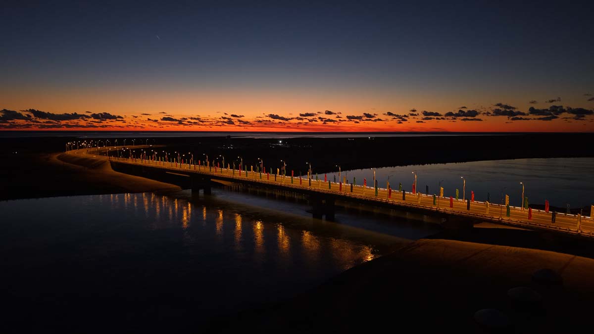 Построенный в рамках модернизации внутренней дорожно-транспортной системы страны современный мост соединяет города Туркменбаши и Гарабогаз с братским государством Казахстан, прокладывая международные транспортные коридоры. Кроме того, эта автомобильная трасса является частью надёжной автомобильно-­дорожной системы Центральной Азии, связывающей Иран, Туркменистан и Казахстан.