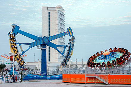 ТУРКМЕНБАШИ, 4 июля (TDH). Сегодня вечером в Национальной туристической зоне «Аваза» прошли красочные торжества по случаю ввода в строй новых объектов курортной инфраструктуры. Здесь состоялось открытие сразу трёх парково-развлекательных комплексов, украсивших морское побережье архитектурно-ландшафтным дизайном, и многоярусной автостоянки. Эти премьеры в разгар летнего сезона стали великолепным подарком тысячам отдыхающих на авазинском взморье, где быстрыми темпами осуществляется грандиозный по своему замыслу и масштабам проект, инициированный Президентом Гурбангулы Бердымухамедовым и нацеленный на комплексную реализацию огромного социально-экономического и туристического потенциала Балканского велаята и всей страны, создание наилучших жизненных условий для туркменистанцев. Формирование на экологически чистом Каспийском побережье курорта мирового класса – это не просто расширение гостиничной сети. Это качественно новый уровень комфорта и сервиса, оздоровительных услуг. Это новый, системный подход к рекреации, как гармоничному сочетанию уникальных природных факторов и ресурсов края с современной индустрией отдыха, активного досуга и укрепления здоровья человека. Это – воплощение заботы Туркменского государства о гражданах, внимание к людям, их потребностям и запросам. Поэтому в данной работе, как подчеркивает лидер нации, нет второстепенных вопросов, здесь важен каждый аспект: от экологических, экономических, социальных условий до духовной и эстетической среды. Утверждению на практике высоких стандартов всех этих составляющих призваны способствовать и очередные объекты, возведенные в Национальной туристической зоне «Аваза». Среди собравшихся – представители руководительского корпуса страны, ряда министерств, ведомств, в том числе заказчики новых объектов, а также зарубежных компаний – генеральных подрядчиков, осуществивших эти проекты, хякимликов Балканского велаята и города Туркменбаши, общественных организаций и средств массовой информации, почетные старейшины, молодежь. На набережной морского курорта вдоль новостроек царит праздничная атмосфера. Парад очередной серии архитектурных премьер начинается в парке аттракционов «Älemgoşar» («Радуга») с театрализованного представления юных артистов культурных центров и школ искусств велаята. Участников торжества радушно встречают и предлагают душистый чай Яртыгулаг и его сказочные друзья. Песни, музыка в исполнении танцевально-музыкальных групп «Hazar nagmalary», «Güller». «Balkan» и других творческих коллективов региона звучат перед арочными воротами дворца культурно-развлекательного центра «Älemgoşar», располагающего массой игровых автоматов, боулингом, комнатой смеха и другими сюрпризами для детей и взрослых. Как отмечали выступавшие, каждый день в истории независимого нейтрального Туркменистана, уверенно идущего вперед по пути прогресса и созидания, отмечен значительными свершениями и замечательными трудовыми успехами. В летописи эпохи могущества и счастья – и великое множество таких славных событий, как сегодняшние торжества. От имени всех туркменистанцев была выражена искренняя признательность Президенту Туркменистана за постоянную заботу о счастье и благополучии народа, создании самых комфортных условий для труда и отдыха, замечательным