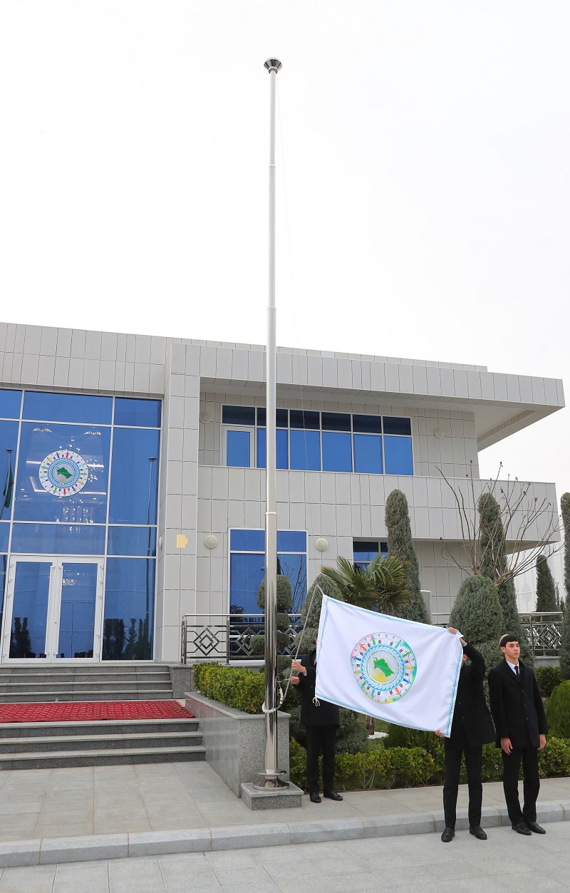 Затем под звуки гимна Благотворительного фонда по оказанию помощи нуждающимся в опеке детям имени Гурбангулы Бердымухамедова поднимается Флаг Фонда.
