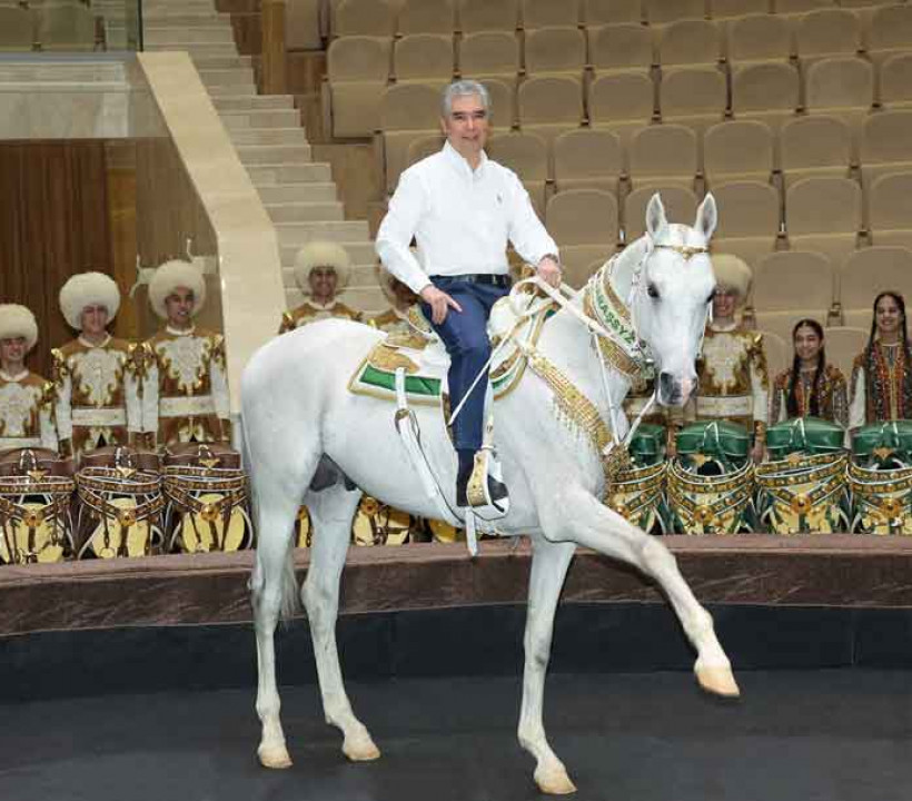Наши предки оставили в наследие мудрые поговорки, выражающие высокое почитание «райских» скакунов: «Taý ata ýetirer, at–myrada», «Atym bar – ganatym bar», «At agynan ýerde toý bolar». Для нашего народа ахалтекинский скакун на протяжении многих столетий был близким другом, которому доверяли сокровенное, а сегодня он олицетворяет стремительное продвижение Отчизны к высотам прогресса, продолжил Герой-Аркадаг.