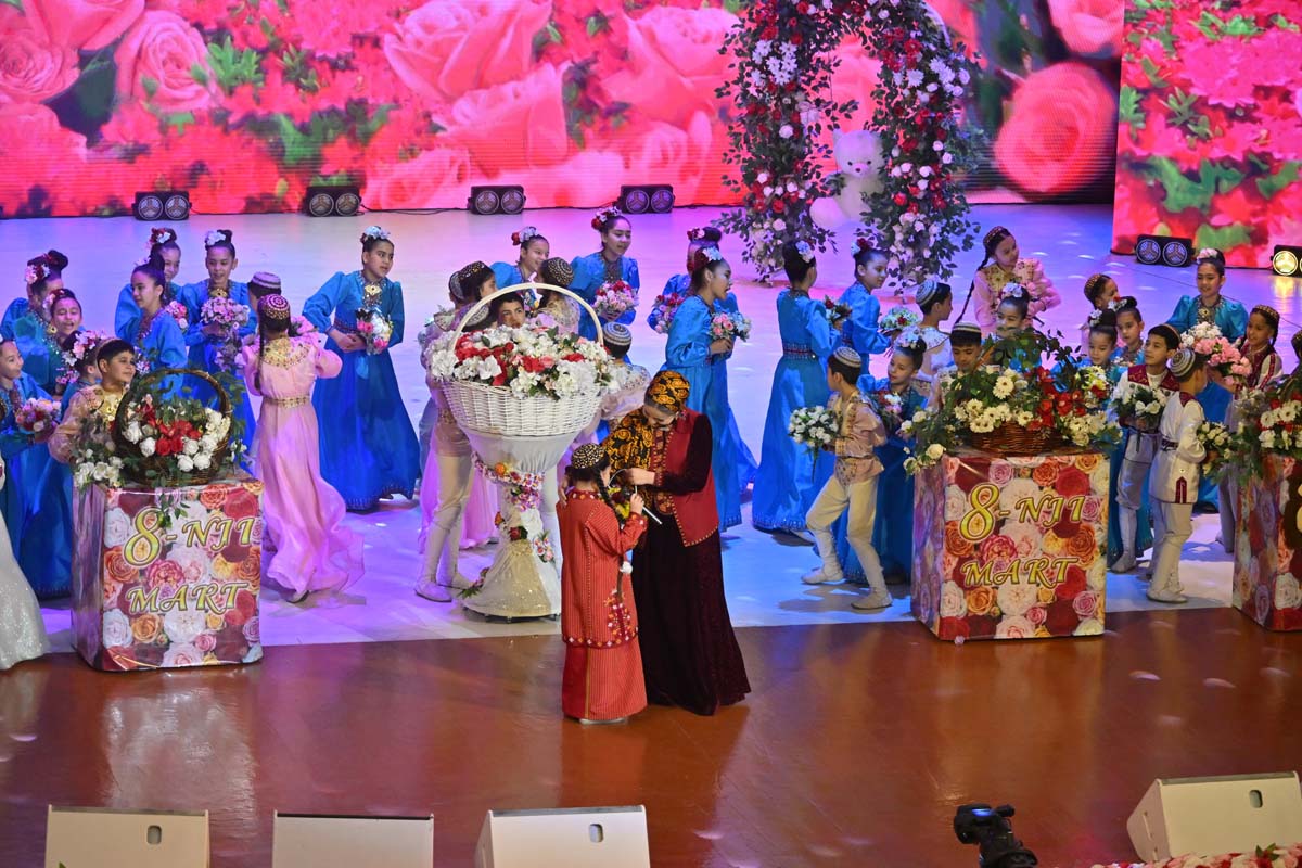 Праздничный концерт продолжился выступлениями народных и заслуженных артистов Туркменистана, известных певцов, песенно-музыкальных и фольклорных коллективов. На сцене звучали проникновенные песни, воспевающие доброту и скромность, благородство, мудрость, красоту и верность женщин, а также безграничную материнскую любовь. Выступления стали выражением глубокого уважения и почтения к женщинам. В постановках был воссоздан прекрасный образ современницы. Это ещё больше обогатило содержание торжества и вызвало чувство гордости у всех собравшихся.