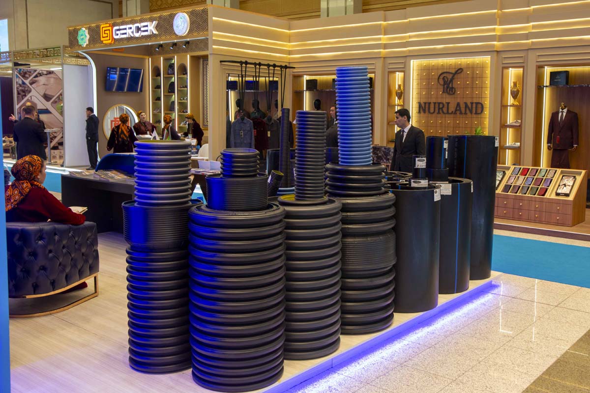 Выставка также знакомит с достижениями в сфере транспорта и логистики. Такие компании, как «Hazar Logistik» и «Ulagly», играют значимую роль в развитии транспортно-­транзитных коридоров. Презентация возможностей частных грузоперевозчиков подчёркивает значение страны как важного транспортно-транзитного узла на перекрёстке Великого Шёлкового пути.