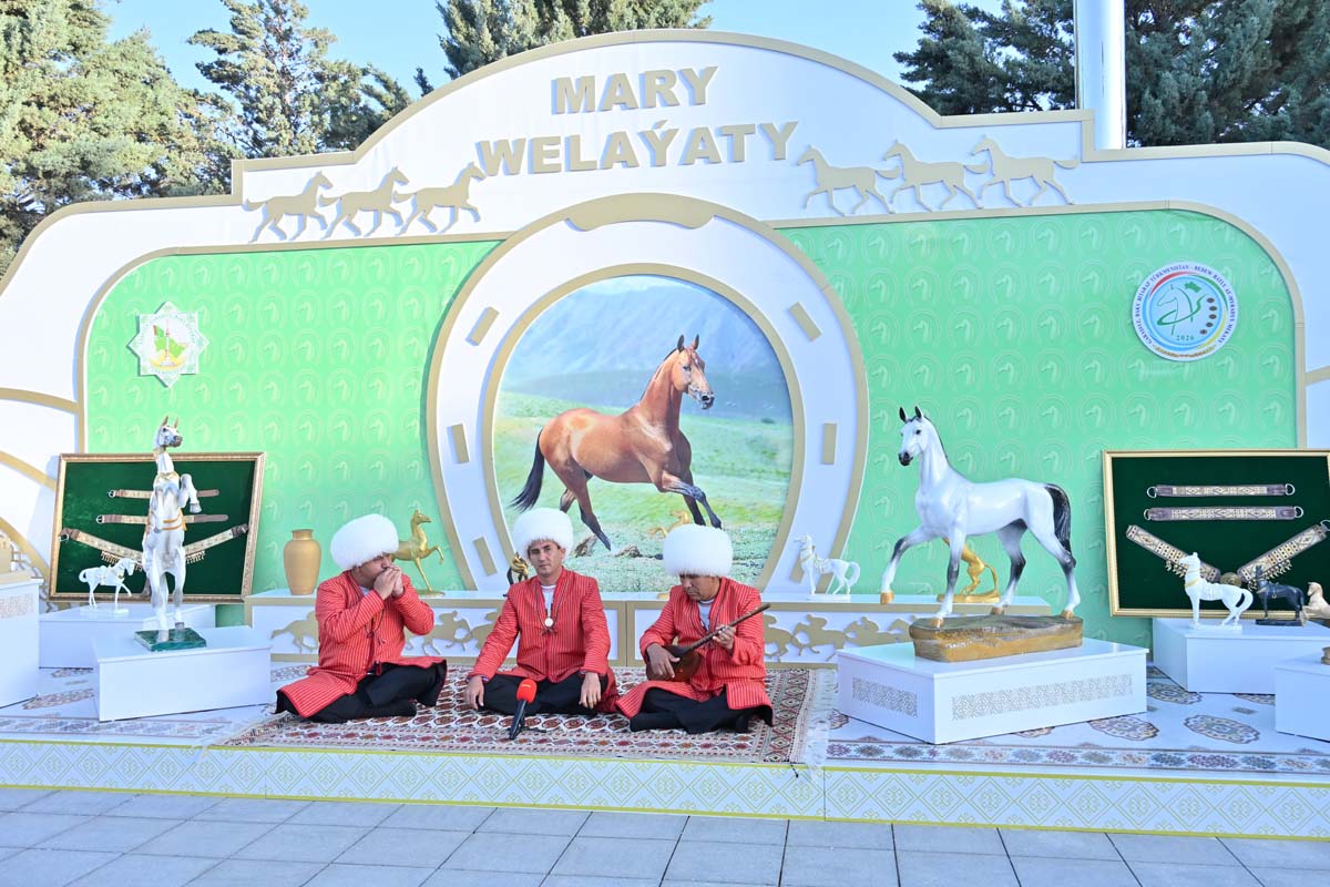 Украшением выставки стали вдохновенные музыкальные выступления и песни в исполнении мастеров искусств городов Аркадаг и Ашхабад, а также всех велаятов страны.