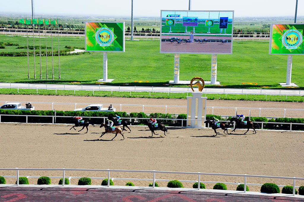 На заполненных трибунах - многочисленные ценители ахалтекинских скакунов. В их числе - делегаты международных форумов, ежегодно объединяющих в нашей столице специалистов и экспертов конного мира, - VII заседания Международной ассоциации ахалтекинского коневодства, Международной выставки-ярмарки и Международной выставки-ярмарки и IX Международной научной конференции «Туркменский скакун и мировое искусство коневодства», приуроченных к Празднику туркменского скакуна. Конный спорт – единственная профессиональная спортивная дисциплина, где человек действует в паре с животным. И этот вид спорта в нашей стране получил активное развитие, благодаря тому, что искусство верховой езды, джигитовка в Туркменистане имеют тысячелетнюю историю и богатые традиции. Захватывающие дух состязания быстроногих скакунов, проводимые у туркмен испокон веков, стали сегодня символом преемственности многовековых обычаев наших мудрых предков. Ведь это – не только смотр лучших представителей уникальной ахалтекинской породы, созданной народными селекционерами в союзе с всемогущей природой, но и гимн неповторимой красоте, удивительно гармонично сочетающейся с уникальной резвостью и выносливостью. Воспитать настоящего скакуна - труд нелегкий и кропотливый. И эту науку наших умелых предков с большим интересом осваивает подрастающее поколение. С первых шагов на новом поприще юных джигитов учат понимать коня, найти с ним общий язык, чтобы стать его настоящим другом. И только после этого приступают к занятиям верховой езды. Азарт и яркая эмоциональная окраска, присущие этому излюбленному виду спорта, сопровождаются настоящим эстетическим удовольствием. Вот и сегодня юное поколение туркменских жокеев продемонстрировало свое мастерство в заездах на различные дистанции, победителям которых в торжественной обстановке были вручены ценные подарки. Предки туркмен стояли у истоков великой коневодческой культуры, слава о которой распространилась по всему миру. Проводя тщательный отбор молодняка, оберегая его от метизации с другими породами, наши предки создали особый тип великолепной лошади. А благодатная туркменская земля стала «колыбелью» лучшего скакуна всех времен и народов, оказавшего огромное влияние на формирование ряда самых известных в мире лошадиных пород. Скачки - это, несомненно, один из самых ярких и зрелищных национальных видов спорта. Благодаря скачкам быстроходные и сильные туркменские кони всегда были прекрасно натренированы и готовы к дальним походам. Это была хорошая школа мастерства, помноженного на смелость наездника-джигита. В наши дни конный спорт пользуется в Туркменистане безграничной популярностью. И что самое главное, благодаря этому все больше молодых людей продолжают традиции отцов, связывая свою жизнь с прекрасными ахалтекинскими скакунами. Проведение в Международном ахалтекинском конноспортивном комплексе состязаний юных жокеев служит продолжению многовековых славных традиций национального коневодства. В этом могли убедиться и зарубежные гости страны - участники торжественных мероприятий по случаю Праздника туркменского скакуна. После осмотра введенного в строй год назад Международного ахалтекинского конноспортивного комплекса, рассчитанного на выращивание 600 коней, и знакомства с налаженной зд