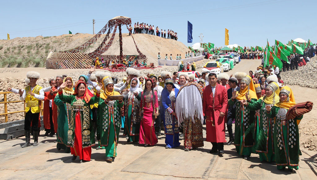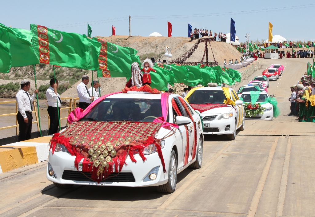 Сегодня в Лебапском велаяте сдан в эксплуатацию понтонный мост через Амударью, соединивший Халачский (дайханское объединение «Пельверт») и Ходжамбазский (дайханское объединение «Мекан») этрапы. По поручению Президента Гурбангулы Бердымухамедова в торжествах по случаю данного события приняли участие члены правительства Туркменистана и депутаты Меджлиса. От имени главы государства собравшихся поприветствовал хяким Лебапского велаята, поздравив местных жителей с вводом в строй путепровода. Понтонная переправа создаёт большое удобство для сельчан Ходжамбазского этрапа. Теперь они могут, перебравшись через Амударью к железнодорожной станции Пельверт, поездом или автомобильным транспортом продолжить поездку в административный центр велаята, столицу Туркменистана и другие регионы страны. Время для подобных поездок для жителей этрапа, где проживает более 74 тысяч человек, значительно сокращается, тогда как раньше им приходилось сначала доехать до Фараба или же до станции Керкичи, потратив на это немало часов, чтобы воспользоваться хорошо развитой транспортной сетью левобережья Амударьи. Среди жителей двух этрапов по берегам реки немало и родственников, которые раньше ездили друг к другу окружными путями. Кроме социального значения новый мост имеет и большую экономическую важность для правобережного этрапа, развития его логистической системы. С многократным сокращением маршрута перевозок ускорится доставка различных народнохозяйственных грузов, в первую очередь, строительных и сельскохозяйственных. За последние несколько лет в Ходжамбазском этрапе введены в строй две новые средние школы каждая на 640 мест, 6 детских садов, две спортивные школы, современные водозаборные сооружения, и строительство объектов социальной и хозяйственной сферы продолжается. Поэтому развёрнутая через Амударью переправа стала важнейшей частью транспортной схемы обеспечения материальными ресурсами активного строительства в местных сёлах. От имени главы государства особо отличившимся при сооружении понтонного моста рабочим были вручены ценные подарки. Данный логистический проект реализовали специалисты Туркменабатского ПО «Деряёллары» Государственной службы морского и речного транспорта Туркменистана, которые за считанные месяцы качественно выполнили весь комплекс работ по монтированию моста. Он состоит из 10 барж-понтонов и 26 пролетных строений грузоподъемностью 36 тонн. Длина моста 842 метра, ширина проезжей части - 7,5 метра, огражденного пешеходного прохода - около 1 метра. Предусмотрены все технологические меры по обеспечению эксплуатационной безопасности моста, включая круглосуточное дежурство двух буксирных теплоходов и одного земснаряда. Таким образом, берега Амударьи теперь соединены на всех участках, где есть необходимость активного транспортного сообщения, что также позволило существенно сократить логистические расходы и повысить пропускную способность региона, его транзитный потенциал и роль в наращивании экспортных потоков. Торжество продолжается праздничным представлением. Затем аксакалы перерезали символическую ленту. В это время в небо взмывают охапки воздушных шаров. Первыми по мосту, на протяжении которого участников торжества встречали красочными обрядами фольклорные коллективы, демонстрирую