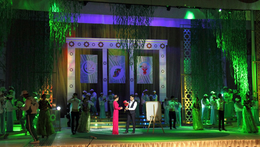 По сложившейся традиции новая постановка Национального музыкально-драматического театра имени Махтумкули приурочена к широко отмечаемому в Туркменистане Дню работников культуры и искусства, учреждённому 27 июня 2008 года. Этот день вошёл в историю национального искусства как дата возрождения туркменской оперы. В отличие от всех предыдущих оперных представлений, в основу оперы «Ruhubelentler» положена самая современная тема - подготовка к Азиаде-2017. Спектакль рассказывает о сегодняшней жизни молодёжи, в том числе студенчества и спортсменов. Музыка создана в содружестве двух композиторов, и в первый раз на сцене встретились профессиональные артисты и учащиеся творческих учебных заведений с представителями спорта. При этом, отдавая дань национальной оперной традиции, автор либретто включил в сюжетную ткань спектакля романтическую линию. Яркая и жизнеутверждающая музыкальная увертюра задаёт тон всей опере, славящей патриотизм, талант и вдохновение нашего народа – миротворца и созидателя. Начинается спектакль сценой праздника в городском парке, звучит ария о гостеприимстве, дружелюбии и воодушевлённости. Динамичность действа отражается в современных ритмах, передающих энергичную подготовку нашей страны к крупному спортивному форуму. Каждый из героев спектакля занимается определённым видом спорта, готовясь принять участие в состязаниях Азиады-2017. В канву постановки также органично входят спортивные танцы и песни, посвящения городу любви – беломраморной туркменской столице. Вместе с тем, авторы оперы «Ruhubelentler» попытались соединить в ней сегодняшний день с историей. Отсылки к прошлому прослеживаются в сценах, рассказывающих о Гёроглы и его коне Гырате. Ахалтекинский скакун – подлинное культурное достояние туркменского народа – выступает в спектакле и в качестве действующего героя, участника состязаний по конкуру, и в качестве образа-символа, неизменно присутствующего во многих сценах. Традиционно обыгрывается лирический сюжет. Влюблённые с честью проходят все испытания, что также демонстрируется в сравнении с известными дестанными образами Гёроглы и Агаюнус. В музыкальной драматургии нового спектакля широко использованы возможности больших сцен, опера изобилует развёрнутыми хоровыми и хореографическими эпизодами. Авторская музыка темпераментна, а порой интонационно близка к национальному фольклору и содержит ряд запоминающихся выразительных характеристик. Творческому коллективу удалось передать воодушевлённость туркменистанцев, готовящихся впервые принять спортивные состязания столь высокого международного уровня. Многофункциональные декорации также подчёркивают динамизм наших будней и праздников. Оперу венчает сцена массового торжества, пронизанного жизнеутверждающей силой. Звучит финальная песня «Мы готовы! Мы готовы, Азиада!»