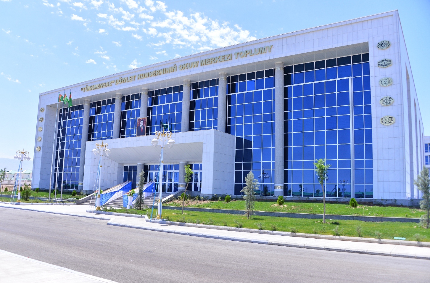 Учебный центр Государственного концерна «Туркменгаз» открылся в массиве Чоганлы Ашхабада. Комплекс беломраморных зданий разместился на площади в 3 гектара. Здесь созданы все условия для оперативного и качественного освоения инновационного оборудования и технологий, активно внедряемых на месторождениях страны. В Центре могут одновременно повышать квалификацию 120 специалистов. Подрядчиком строительства объекта выступил Госконцерн «Туркменнефтегазстрой», проектирование и субподрядные работы осуществили специалисты Хозяйственного общества «Dowamat». Поставку инновационного учебного оборудования обеспечила корейская компания «LG International Corp». В трехэтажном учебном корпусе разместились семь учебных классов и четыре прекрасно оснащённые профильные лаборатории. Так, в электротехнической лаборатории – особые стенды, персональные для каждого учащегося, симулирующие работу сложнейшего электрооборудования буровых установок, скважин, трубопроводов и компрессорных стаций. Они дают возможность смоделировать любую ситуацию и в рамках обучения найти наилучший выход, обеспечив наиболее эффективное функционирование современных установок. Расположившаяся по соседству аудиовизуальная лаборатория позволит досконально изучить режимы работы дистанционных систем управления, наблюдения за технологическими процессами и беспроводных каналов связи. Стенды позволяют проводить отладку и обеспечивать бесперебойную работу систем. Особенно впечатляет аудитория, оснащенная персональными стендами, имитирующими сварку различных деталей. 3D визуализация и специальные шлемы производства компании «Seabery Soluciones» создают виртуальную реальность, полную иллюзию рабочего процесса. Есть в Учебном центре и стенды, позволяющие осваивать работу современного бурового оборудования. Усвоить теорию помогают компьютерные аудитории. Здесь имеются также специализированные классы сервисной компании «Schlumberger». Изучение проектирования будет осуществляться в аудиториях, оснащённых компанией «Eni Turkmenistan Limited». В учебном корпусе разместился также конференц-зал, столовая, комнаты отдыха, все, что необходимо для эффективного учебного процесса, работы преподавателей. Украшением объекта стал великолепный атриум со стеклянной крышей, где разместилась уютная зона отдыха и зимний сад. Великолепно оснащено и пятиэтажное здание общежития. Уютные комнаты, по убранству не уступающие комфортабельным гостиничным номерам, оснащены системами климат-контроля, современной удобной мебелью.