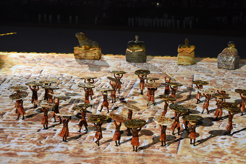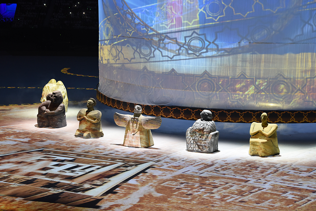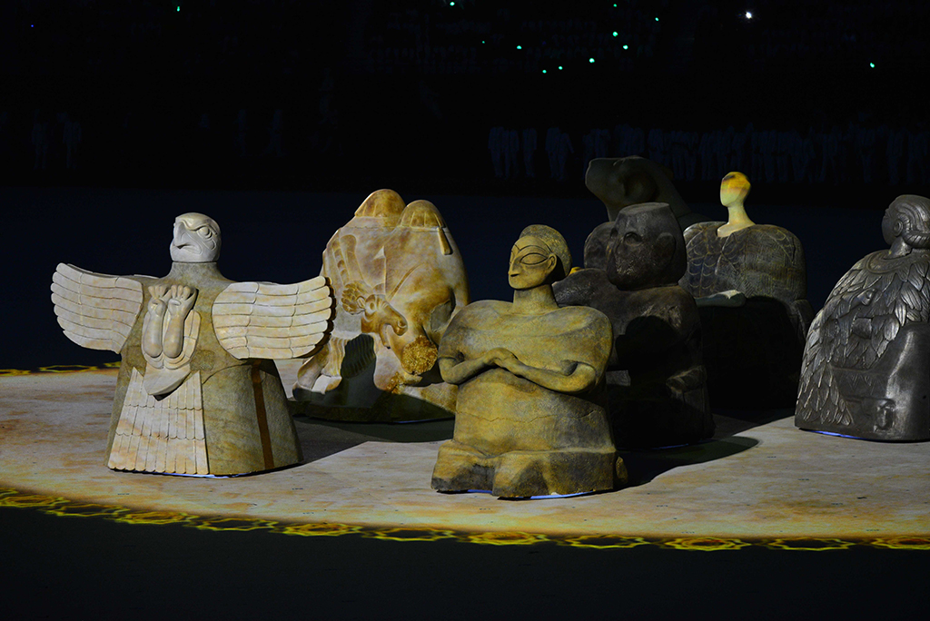 В предыдущих материалах этой серии мы опубликовали фрагменты из истории великих туркменских держав и знаменитых городов, вошедших в тематическую канву масштабной по замыслу композиции, представленной на церемонии открытия V Азиады. Это – столица великой Парфянской империи, расположенная на территории Ахалского велаята, историческая область Дехистан в Балканском велаяте, столица Хивинского ханства Куняургенч в Дашогузском велаяте и один из ключевых городов на Великом Шёлковом пути Амуль в Лебапском велаяте. По сюжету театрализованной постановки из этого торгового города, известного своими богатствами на весь Восток, караван с купцами отправился в дальний путь, который приведёт их сквозь время и пространство в другие края и иные эпохи – в древнюю страну Маргуш. 5. Столица Маргуш – Гонур-депе: город царей и богов Гонур-депе – столица древней Маргуш, называемой в греческих и римских летописях Маргианой, – не просто крупнейшее в Центральной Азии поселение эпохи бронзы (конец III – середина II тысячелетия до н.э.). Это ещё и яркий символ глубочайших корней туркменского народа, чьи далёкие предки создали такую высокую культуру, что учёные всего мира согласились: страна Маргуш, центром которой был Гонур-депе, наряду с Древним Египтом, Индией, Китаем и Месопотамией, является одним из пяти первоначальных очагов мировой цивилизации, где скрещивались торговые и культурные международные связи. Достижения маргушцев в архитектуре и изобразительном искусстве, уровень их ремесленного производства, созданная ими политическая система и религиозная доктрина ставят их в число передовых народов Древнего Востока, открывших пути дальнейшего прогресса человечества. Гонур-депе – это целый археологический парк в сердце одной из величайших пустынь – Каракумы и самое большое из более трёхсот поселений в древней дельте реки Мургаб. Археологи выяснили, что город возник в 2300-2250 годах до н.э. и просуществовал около 600-800 лет. Только центральная часть монументальных сооружений гонурского комплекса занимала к тому моменту, когда его оставили люди (середина II тыс. до н.э.), около 25 гектаров… Во время театрализованной постановки на Олимпийском стадионе Ашхабада эпизод с Маргианой начался с того, что на поле появились контуры раскопок гигантского города древности Гонур-депе, а затем – реконструированные учёными городские постройки… В ходе археологических исследований был обнаружен также некрополь на площади в 10 гектаров. Погребальные предметы и ювелирные украшения похороненных здесь людей поражают своим великолепием. Это высокохудожественные изделия из камня, металла, слоновой кости и, конечно, глины, которая служила сырьём для умелых гончаров и скульпторов, создавших тончайшие керамические сосуды изысканных форм и фигурки божеств языческого пантеона. Все эти бесчисленные предметы, сопровождавшие обитателей Гонура, сегодня являются экспонатами нескольких музеев Туркменистана, а их дома, царский дворец и святилища вокруг него стали объектами Государственного историко-культурного заповедника «Древний Мерв». Антрополог Н.А.Дубова, много лет проработавшая на раскопках Маргианы и исследовавшая более 600 погребений, пришла к выводу о высоком жизненном уровне населения Гонур-депе. С тех пор, как в 1974 году легендарный археолог Виктор Сарианиди