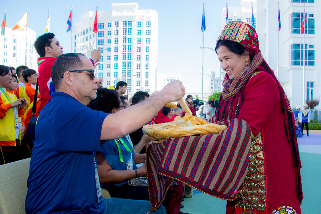 Игры «Ашхабад 2017» стали не только большим и ярким праздником спорта, но и великолепной, полноформатной демонстрацией миру культурного наследия туркменского народа и вершинных достижений нашей культуры. Начиная с самой атмосферы Игр, пронизанной духом национального гостеприимства, и завершая окружающим это грандиозное событие колоритным антуражем из народной обрядовости, творческих, художественных традиций, – всё это стало воплощением самобытной красоты и богатства нашего национального наследия. Ещё на стадии разработки идейной концепции Игр, Президент Гурбангулы Бердымухамедов выдвинул задачу отразить уникальное национальное наследие Туркменистана во всём, что так или иначе связано с организацией и проведением V Азиады: в её символике, архитектуре и дизайне спортивных объектов, оформлении туркменской столицы, декоре униформы спортсменов и волонтёров. Глава государства лично курировал данный вопрос, регулярно инспектируя его решение по каждому аспекту. По мысли лидера нации, именно культурное наследие нашего народа – как выработанная за века и тысячелетия система этических ценностей и нравственных ориентиров – должна высветить глубоко гуманистическую направленность, духовную, миротворческую суть такого колоссального проекта, как Игры «Ашхабад 2017». Тысячи участников и гостей Азидады, многочисленные туристы, посетившие в эти дни нашу столицу, а также миллионы телезрителей и читателей во всех уголках планеты могли получить более близкое представление о сокровищнице культурного наследия. Конечно, во многом благодаря незабываемому представлению на церемонии открытия Игр, где история нашего народа предстала как огромное ковровое полотно, сотканное из разных эпох. Объявив Игры открытыми, Президент Гурбангулы Бердымухамедов ударил в небольшой колокол, давая старт торжеству. И это ещё одна черта из копилки нашего национального наследия – так в старину возвещали о важных событиях и радостных вестях. В чудесный богатый орнамент показанного на открытии Игр шоу вплелось великое множество образов, связанных с наследием нашего народа. И это, прежде всего, летопись духовности нации. Не хроника завоеваний и сражений, а ёмкое повествование о том, как накапливался творческий, духовный опыт и созидательный потенциал туркмен, строивших процветающие города и могущественные государства, возводивших неповторимые архитектурные шедевры и подаривших миру непревзойдённых скакунов… Ахалтекинский конь – символ национальной гордости – стал и одним из главных символов ашхабадской Азиады. Его гигантский силуэт возвышается над Олимпийским стадионом, и его абрис повторяется бесчисленное множество раз в оформлении Олимпийского городка. О том, какое значение придаётся скакуну в культурной традиции туркмен, какую выдающуюся роль он сыграл в судьбе нации можно судить и по беспрецедентной акции – состоявшемуся по инициативе Президента Гурбангулы Бердымухамедова 500-дневному конному марафону, охватившему все регионы нашей страны. В этом тоже есть отражение обычая, пришедшего к нам из глубины веков вместе с богатейшим национальным наследием – посылать конных гонцов нести благую весть во все уголки родной земли. И вот, 17 всадников с факелом, зажжённым на крупнейшем газовом месторождении – «Галкыныш» прибыли на Олимпийски