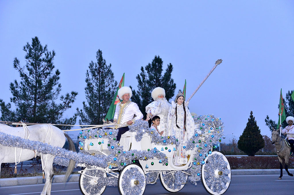 «Älem» medeni-dynç alyş merkeziniň öňündäki meýdançada oturdylan ýurdumyzyň Baş arçasy köpöwüşginli yşyklary, ýaşajyk türkmenistanlylaryň belent ruha beslenen Täze ýyl baýramçylygyna bagyşlanan aýdymlary, ajaýyp çykyşlary we joşgunly tanslary bilen utgaşyp, Täze, 2020-nji ýylyň ýakynlap gelýändigini äleme aýan etdi. Bu dabara hemmeleriň söýüp garaşýan baýramçylygyna galan wagtyň azalýandygyny äşgär etdi. Dabarany guraýjylar «Älemiň» öňündäki meýdançany gündogar ertekilerine çalymdaş ýurduň keşbine öwürmek ugrunda ukyp-başarnyklaryny gaýgyrman tagalla etdiler. Munuň özi «Türkmenistan — rowaçlygyň Watany» şygary hem-de hormatly Prezidentimiz Gurbanguly Berdimuhamedowyň edebi eserleri bilen ruhlanan ýylyň dabaralara gurşalýandygynyň subutnamasyna öwrüldi. Şu ýyl dabarany guraýjylar çagalar üçin diňe bir dynç alyş däl, eýsem, özboluşly aň-bilim çykyşlaryny taýýarladylar. Baýramçylygyň esasy gahrymanlary bolan Aýazbaba, Garpamyk, Bilgirje we Mämmetjan sanly ulgamyň kömegi arkaly Watanymyzyň ähli sebitlerinde boldular hem-de ykdysadyýetde, medeniýetde, durmuş ulgamynda ýetilen sepgitler, hormatly Prezidentimiz Gurbanguly Berdimuhamedowyň üns-aladasy netijesinde Garaşsyz, Bitarap Türkmenistanda bitirilen beýik işler bilen tanyşdylar. Täze ýyl baýramçylygynyň gahrymanlarynyň gezelenji Balkan welaýatyndan başlandy. Olar döwrebap gämide Hazar deňziniň giňişlikleri bilen ýüzüp, «Awaza» milli syýahatçylyk zolagyna gelip düşdüler. Bu ýerde hormatly myhmanlary Tikgi we Potdyş atly gülki paýlaýan artistler, şeýle hem köp sanly çagalar toparlary garşyladylar. Aýazbaba, Garpamyk, Bilgirje we Mämmetjan «Jadyly kenar» seýilgähinde bolup, körpeler bilen dürli oýunlara goşuldylar. Soňra olar Daşoguza uçmak kararyna geldiler. Onlaýn ulgamy boýunça uçar peteklerini sargyt eden myhmanlar Türkmenbaşynyň Halkara howa menziline gelip, bu ýerden Daşoguza uçdular. Türkmenistanyň demirgazyk welaýatynyň howa menzilinde hormatly myhmanlar dabaraly, şatlyk-şowhun bilen garşylandy. Soňra olar bu ýerde şäheriň merkezi meýdançasyna geldiler. Bu ýerde türkmen bazary gurnaldy. Şonda milli tagamlaryň ähli görnüşleri, amaly-haşam sungatynyň ajaýyp eserleri görkezilýär. Aýazbaba kömekçileri bilen hödürlenen tagamlardan dadyp, ähli amatlyklary bolan ýaşaýyş jaýlara göçüp gelmek bagty miýesser eden maşgalalary gutlamaga howlukdylar. Olar täze öýleriň eýelerine bagtyýar ýaşamagy arzuw edýärler. Soňra olar Lebap welaýatyna tarap ugur aldylar. Myhmanlaryň ilkinji baran ýeri Köýtendag boldy. Bu ýerde olar tutuş dünýä belli bolan dinozawrlaryň aýak yzlaryny synladylar hem-de Türkmenabat şäheriniň merkezi seýilgähinde guralan baýramçylyk dabarasyna gatnaşmaga çagyryldy. Şäheriň merkezi seýilgähinde ýaşajyk artistleriň, sungat mekdepleriniň okuwçylarynyň we skripkaçylaryň baýramçylyk mynasybetli taýýarlan çykyşlary görkezilýär. Aýazbaba we Garpamyk öz ýoldaşlary bilen bilelikde, görkezilen myhmansöýerlik üçin hemmelere tüýs ýürekden hoşallyk bildirýärler. Soňra olar demir ýol arkaly Mary şäherine tarap ýola düşýärler. Bu ýerde hem Bilgirje sanly ulgam arkaly demir ýol peteklerini sargyt edýär. Myhmanlarymyz Mary şäherine gelip, ilki bilen, welaýat kitaphanasyna barýarlar. Bu ýerde myhmanlar kitaphanada hereket edýän obserwatoriýanyň işiniň aýratynlyklary, onda asman jisimlerini häzirki zaman ylmy enjamlar arkaly öwrenmek üçin döredilen şertler bilen tanyşýarlar. Şeýle hem bu ýerde myhmanlara kitaphananyň kitap gaznasy, onda ornaşdyrylan elektron kitaphana ulgamy barada gürrüň berýärler. Soňra Aýazbaba, Garpamyk we olaryň ýoldaşlary Marynyň bazaryna tarap ugradylar. Bu ýerde ähli görnüşdäki harytlaryň, önümleriň bolçulygyny özünde jemleýän hakyky gündogar bazary döredilipdir. Bazarda zehinli ussalaryň döreden milli gymmatlyklary, türkmen topragynda öndürilen oba hojalyk önümleri we beýlekiler alyjylara hödürlenilýär. Welaýatda ösdürilip ýetişdirilen gök we bakja önümleriniň dürli görnüşlerine haýran galyp, olar tehnikanyň iň soňky gazananlary bilen enjamlaşdyrylan, banan ýetişdirilýän ýyladyşhana barýarlar. Bu ýerde dekabr aýynyň ortasynda ýokarda agzalan tropiki miweleriň bol hasyly ýetişdirildi. Gyş paslynda banan hasylyny ýygnap almak ýaly bu täsinlik hormatly Prezidentimiz Gurbanguly Berdimuhamedowyň durmuşa geçirýän oňyn syýasaty netijesinde mümkin boldy. Ýurdumyzda azyk bolçulygyny üpjün etmek, daşyndan getirilýän harytlaryň ornuny tutýan önümçilikleri döretmek meseleleri bu syýasatyň ileri tutulýan ugurlarynyň biridir. Myhmanlar Mary welaýatynyň wekilleri bilen mähirli hoşlaşyp, Ahal welaýatyna ugradylar. Olar, ilki bilen, çopan goşuna, çopanyň ak öýüne baryp gördüler. Olar bu ýerde hem beýleki welaýatlarda bolşy ýaly, mähirli garşylandy. Halkymyzyň şöhratly myhmansöýerlik däplerine hormat goýýan baýramçylygyň myhmanlary öý eýeleriniň taýýarlan tagamlaryna ýokary baha berdiler. Olar toý desterhanynyň başynda dutarçy bagşynyň aýdymyny diňlediler we bu ýerden baýramçylygyň esasy dabaralarynyň geçýän ýerine tarap ugradylar. Aýazbaba, Garpamyk we olaryň ýoldaşlary milli Liderimiz Gurbanguly Berdimuhamedowyň başlangyjy esasynda döredilen «Türkmen alabaýy» hojalyk jemgyýetine baryp gördüler hem-de bu ýerde alnyp barylýan işler bilen tanyşdylar. Şeýle hem olar wepalylygyň, batyrlygyň we çydamlylygyň nyşany hasaplanylýan meşhur alabaýlara edilýän ideg işleri bilen gyzyklandylar. Ahal welaýatynyň merkezinde myhmanlar aýdym-sazly çykyşlara uly gyzyklanma bilen tomaşa edýärler. Soňra agzybir dostlar ak mermerl